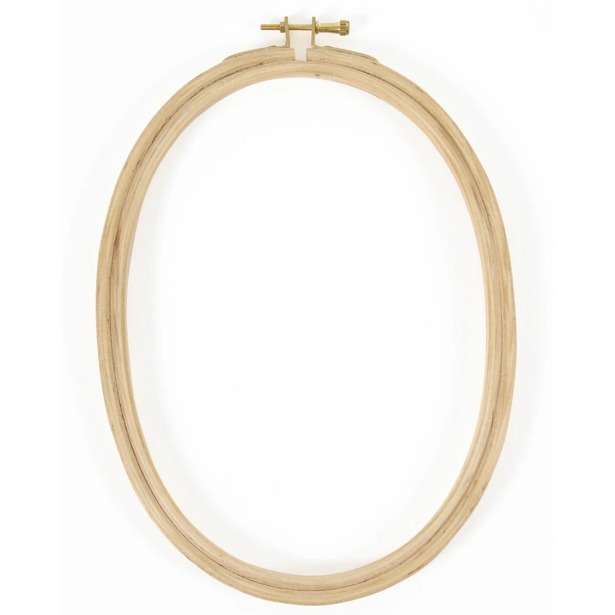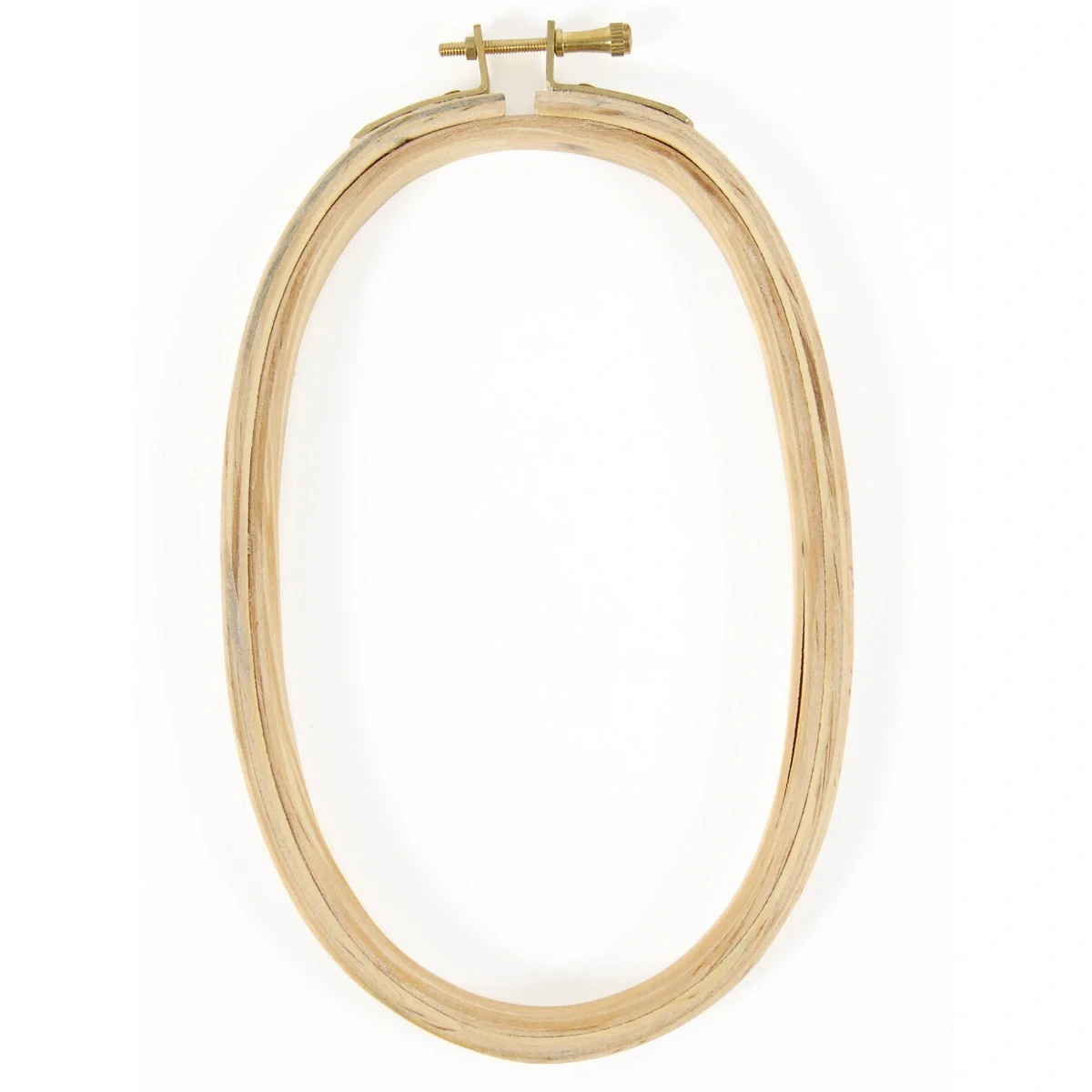 Beech wood oval hoop, available in various sizes, ideal for embroidery and display