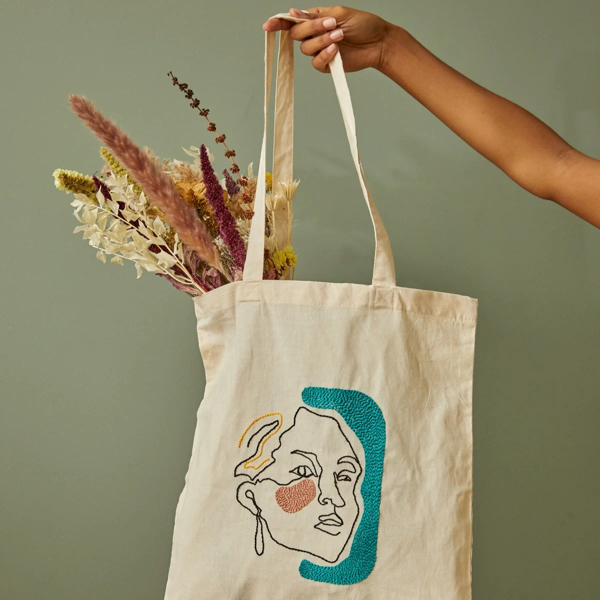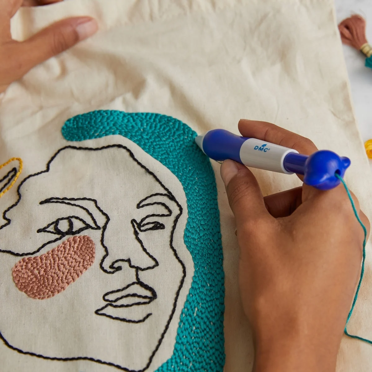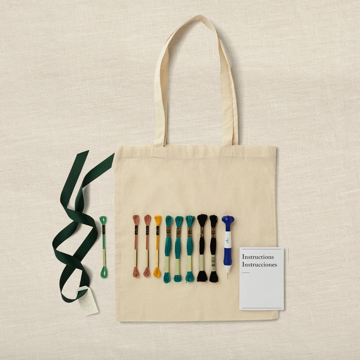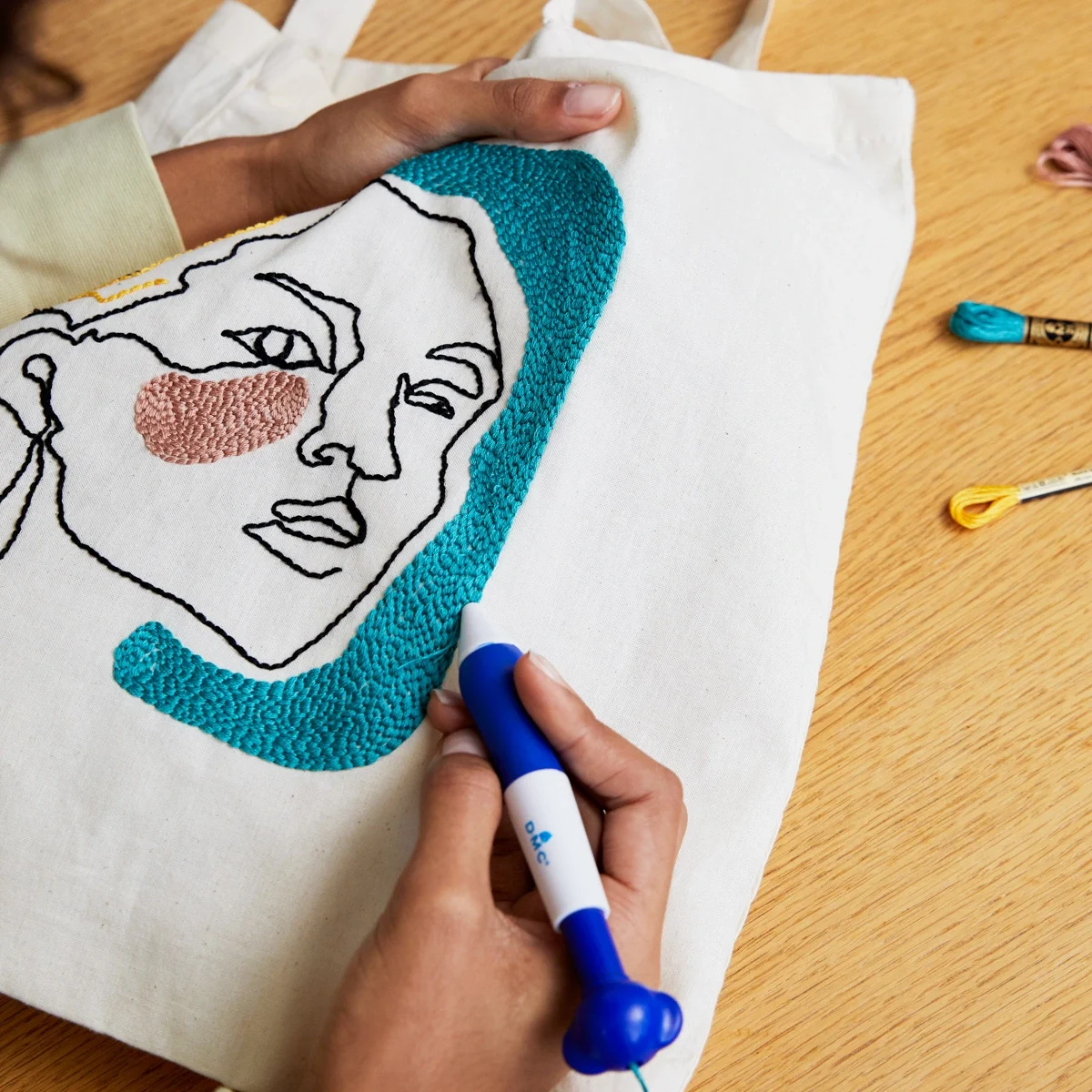Punch needle kit with cotton tote bag, includes DMC skeins, needle and instructions