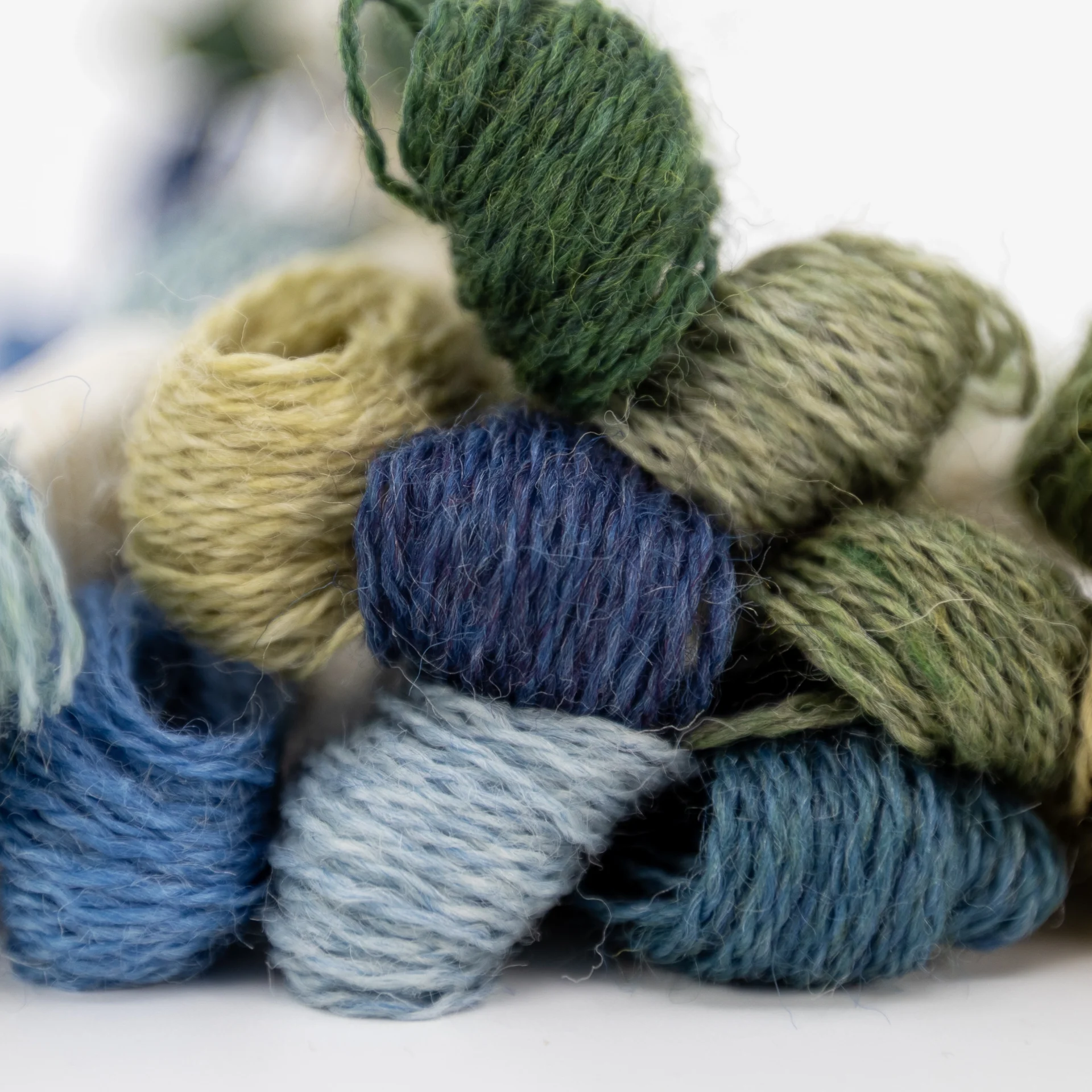 DMC Eco Vita organic wool embroidery thread, in 16 m skeins, green and blue tones