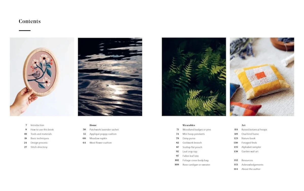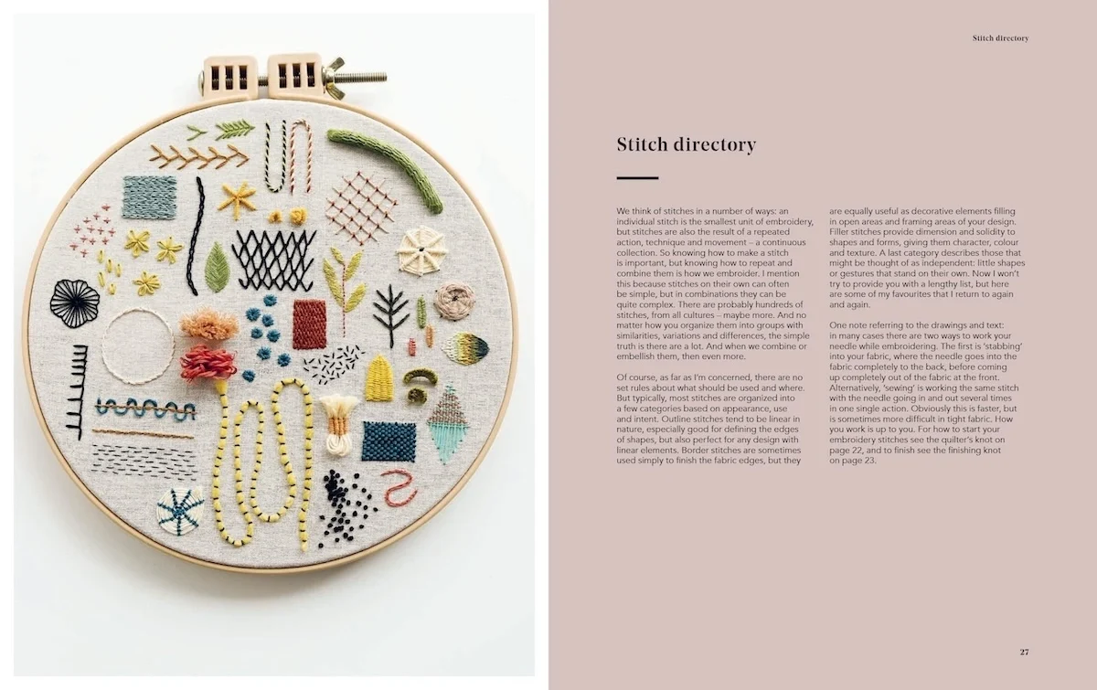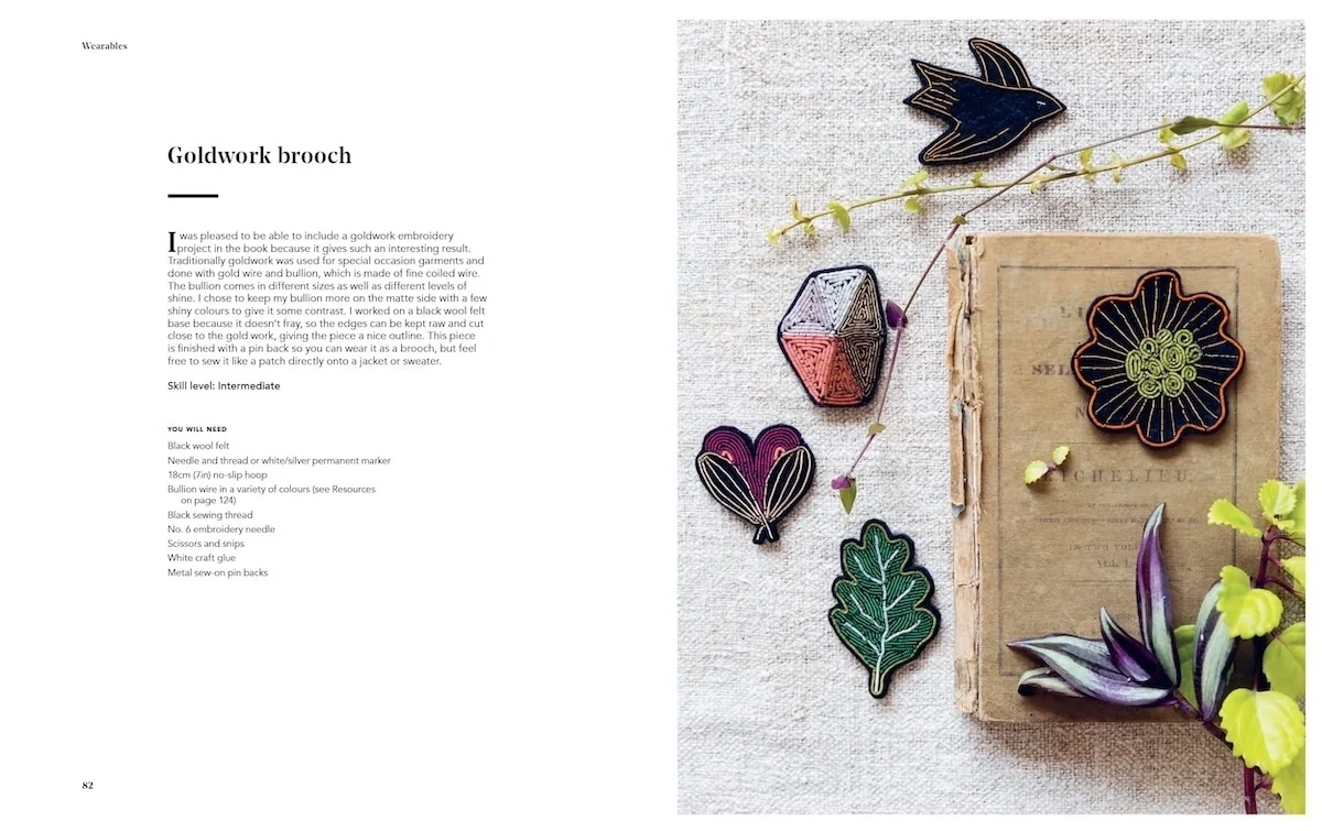 Botanical embroidery guide with 20 modern projects. Includes instructions and links to free downloads of the patterns.
