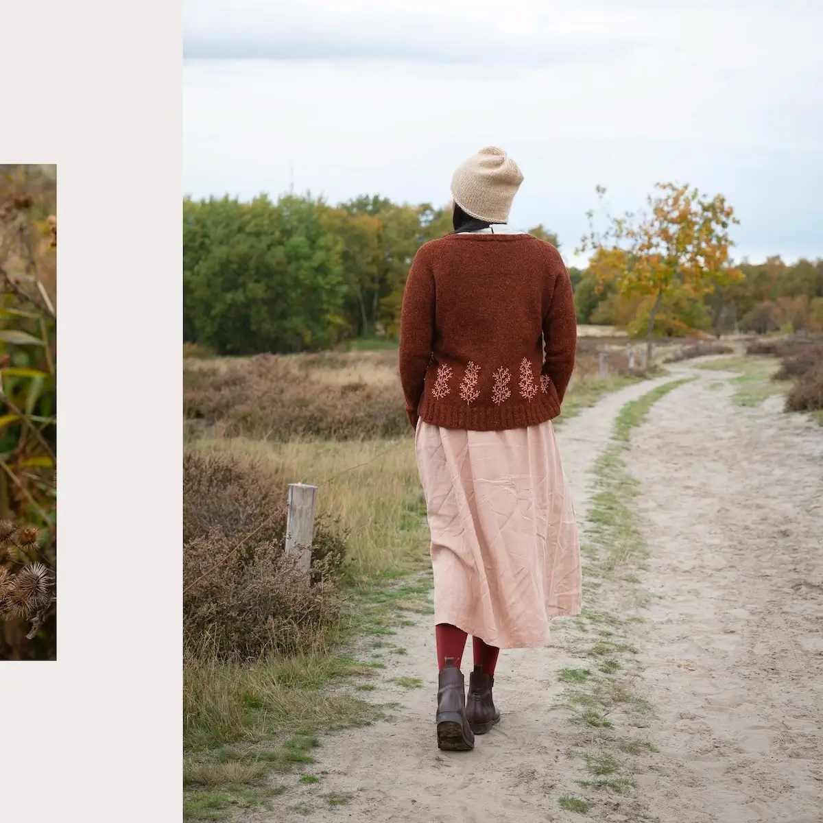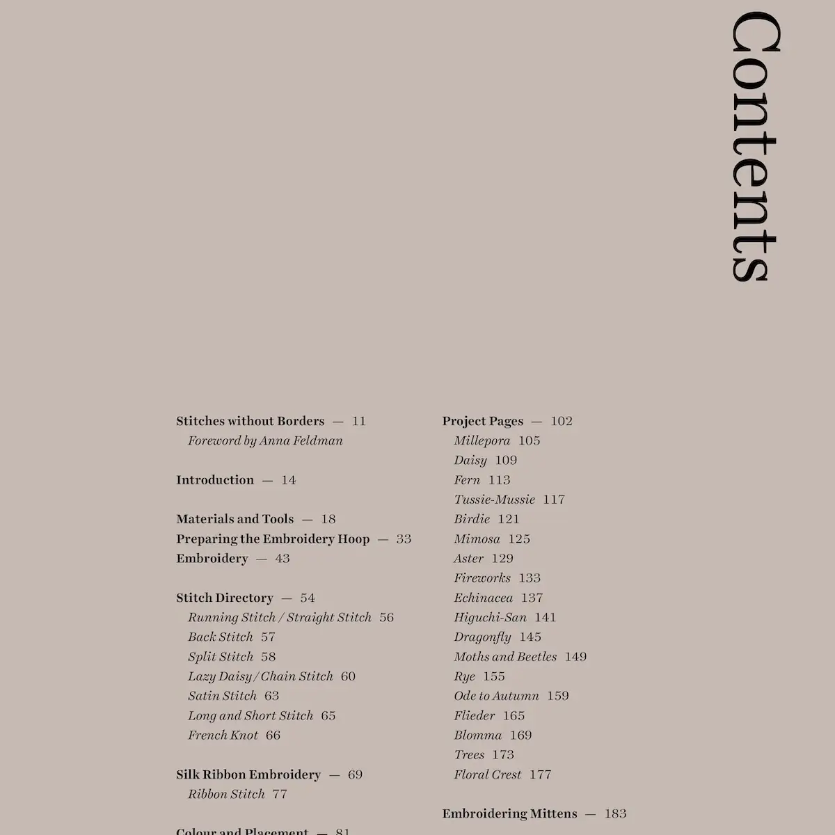 German artist Judit Gummlich, who describes herself as an “embroiderer, knitter, seamstress, beekeeper, catlady, book eater, gardener”, is the author of this hardcover book which, if it weren’t so instructive, would serve perfectly as a decorative coffee table book. An experienced and dedicated knitter, she guides us through the art of embroidery, impressing us with her technical know-how and ingenuity. Her taste for subdued colors and simple, organic patterns stands out as you turn each page.