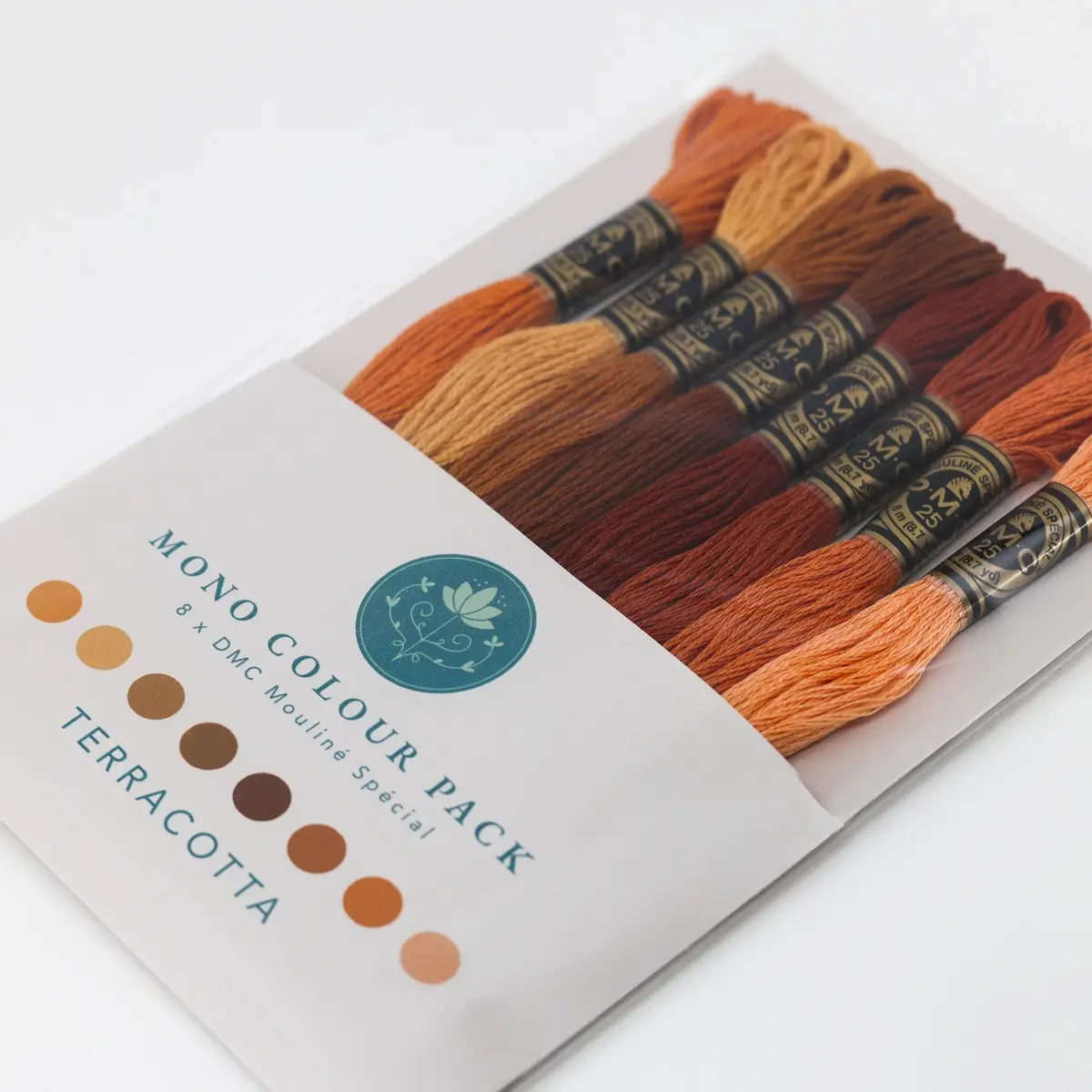 This Mono Colour Pack was created for you: a subtle and elegant combination of 8 skeins of DMC Mouliné Spécial, all in the same shade, with tonal variations that create depth and harmony in your embroidery.