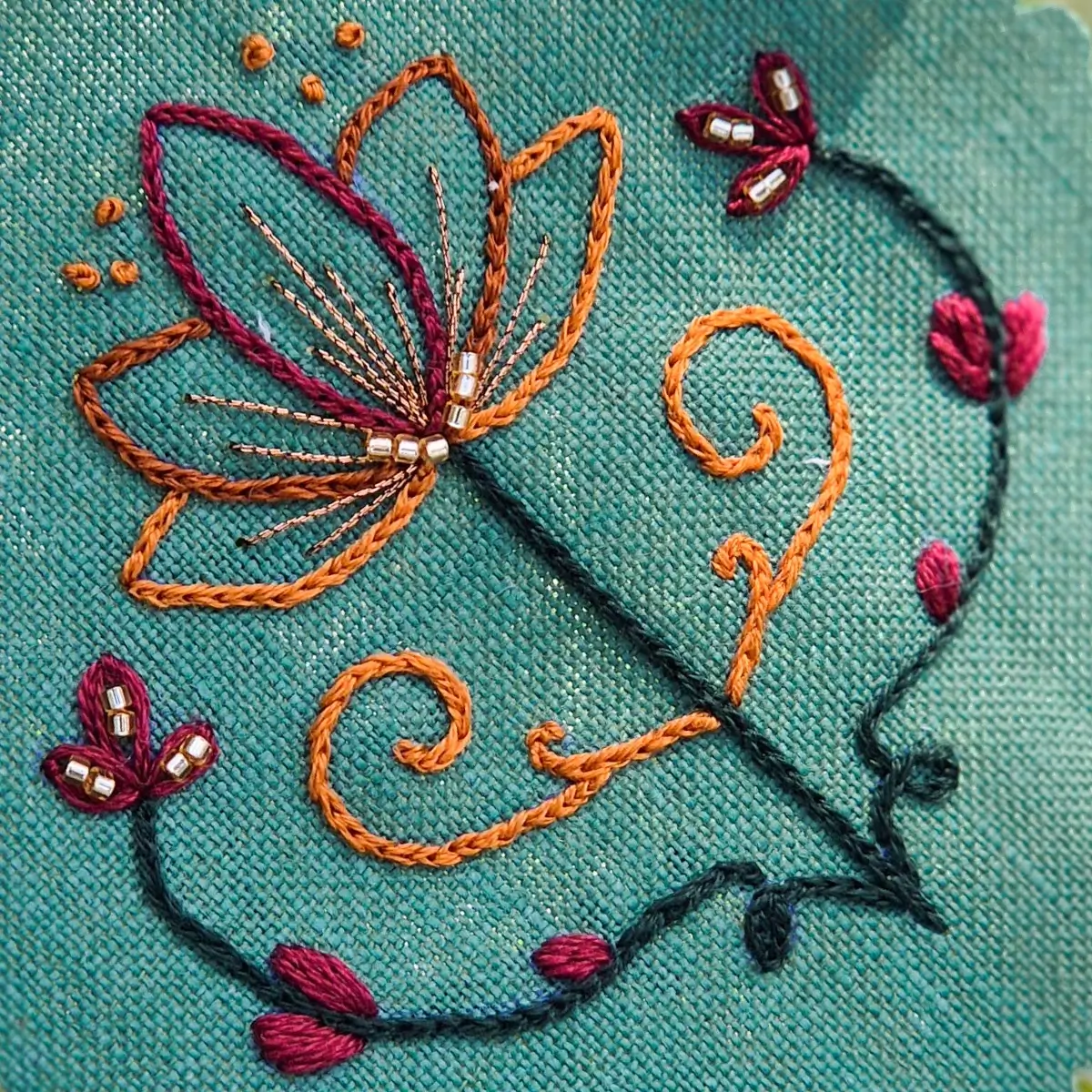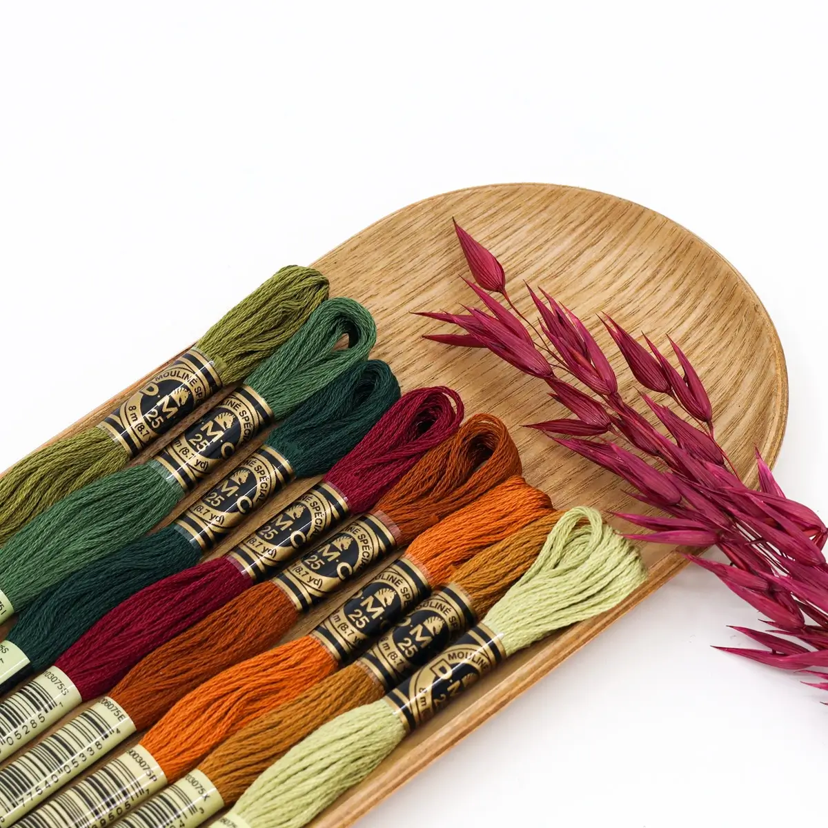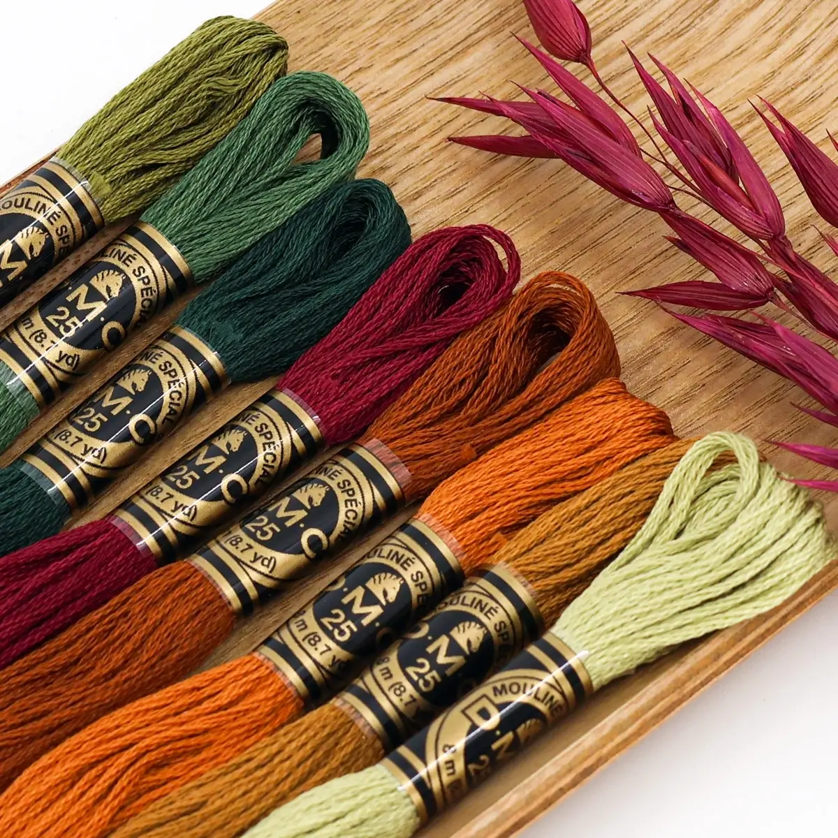 This is an earthy, vibrant palette that combines dense greens, deep reds and warm oranges – perfect for expressive embroideries, full of strength and natural intensity.