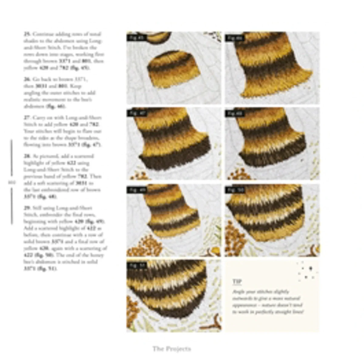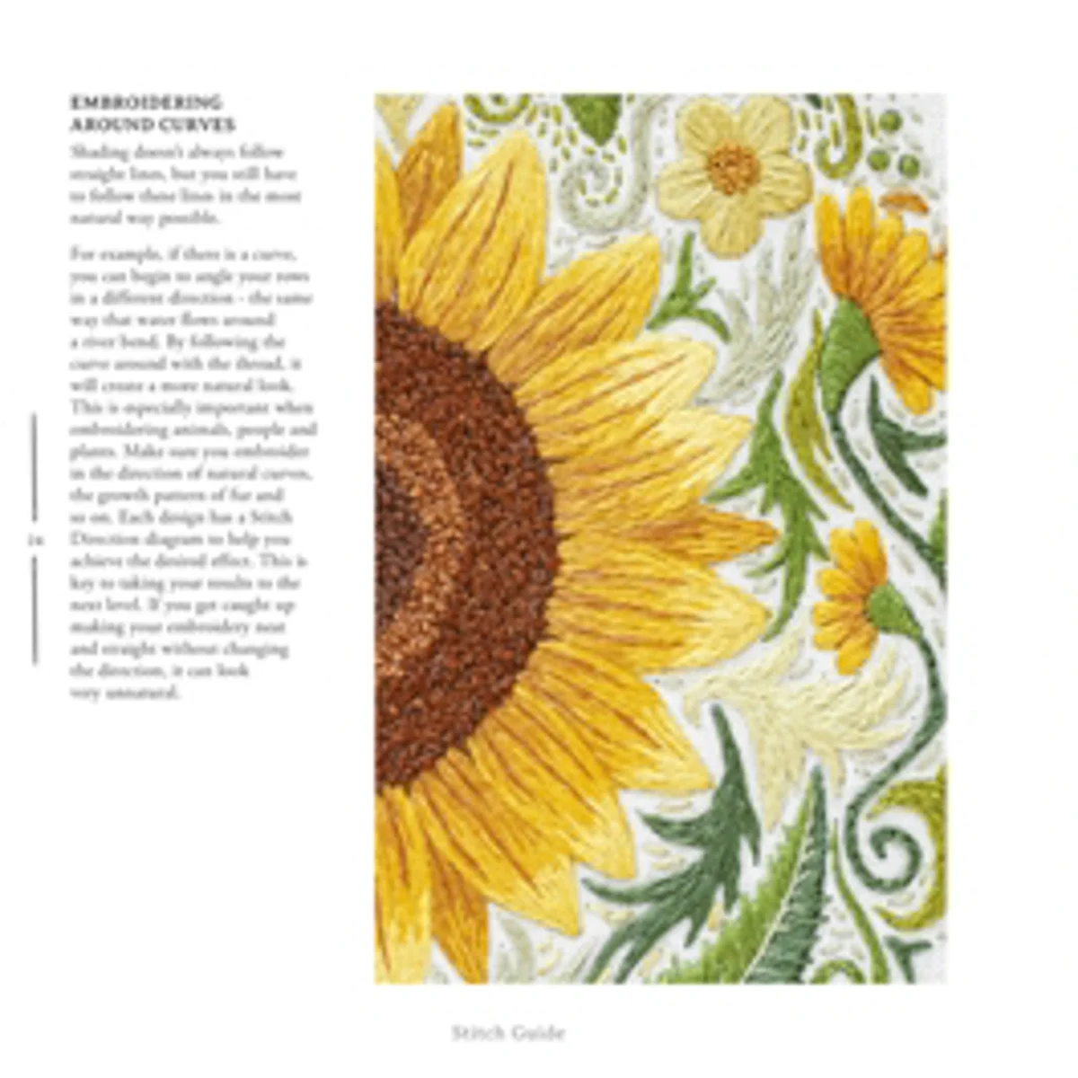 We have a special fondness for this wonderful book. Its charming hardcover promises – and the contents deliver. A detailed guide to learning needlepainting. This is an advanced embroidery technique that mimics the effect of painting, where needle and thread take the place of brush and paint. The effect is achieved through layers of very intentional stitches, creating realistic shadows, gradients and textures.