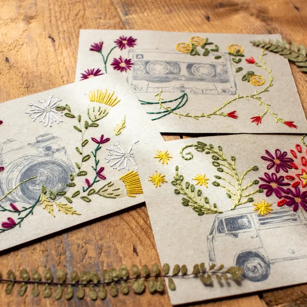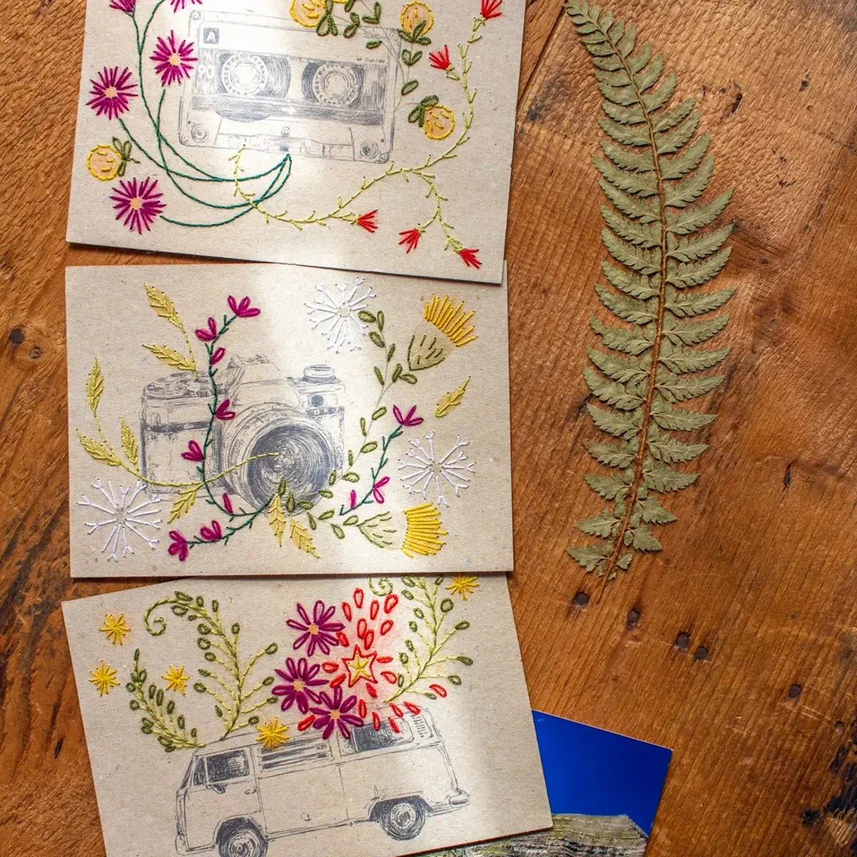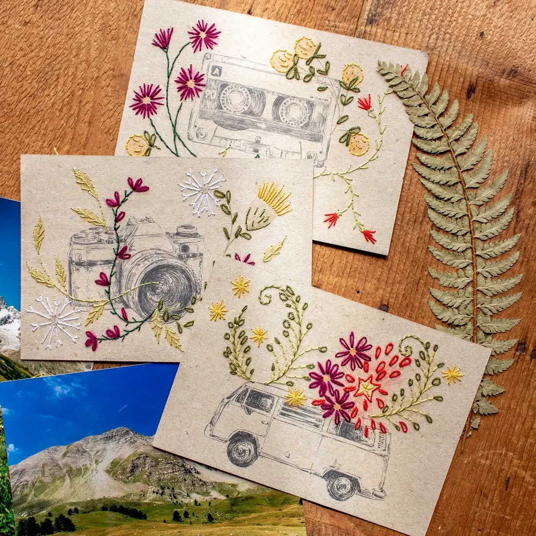 Complete DIY kit including 3 cards, embroidery threads, a needle and instructions
