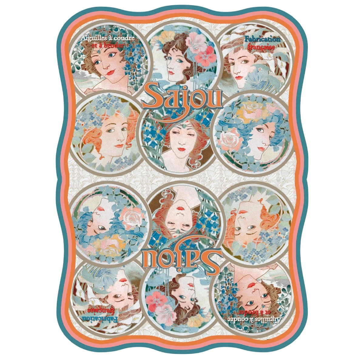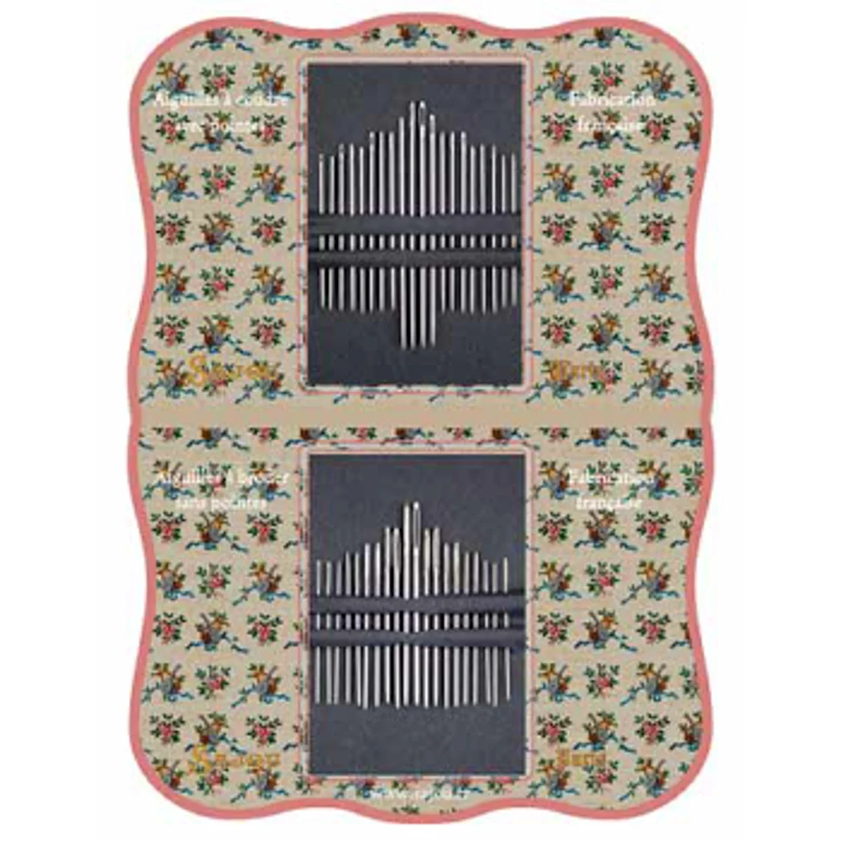 Sajou case with 40 needles (sewing and embroidery) of high quality and Art Deco design. Available in various designs.