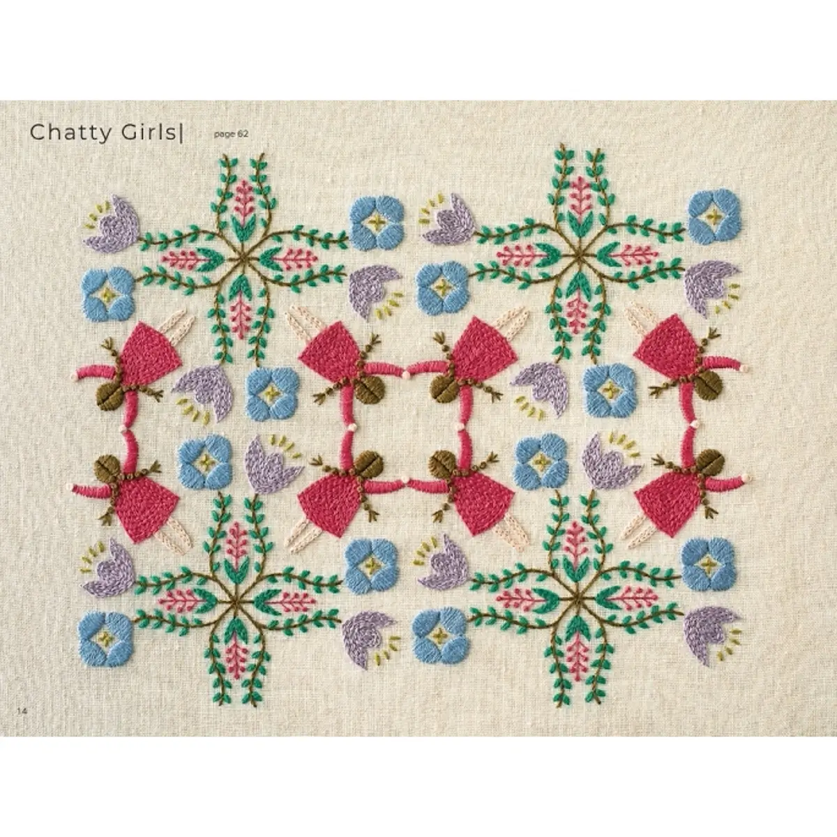 Compact book with 42 continuous patterns by Yumiko Higuchi, ideal for embroidering unique pieces such as covers, bags or accessories.
