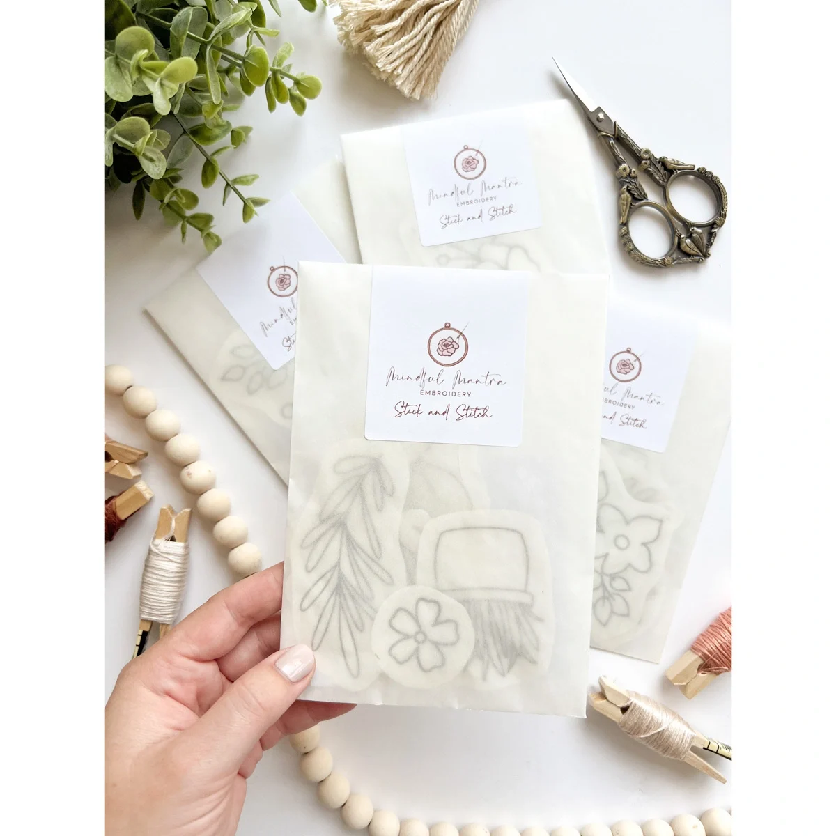 The sets vary in size and number (from 11 to 24 designs) and are made and packaged by hand by the creator of Mindful Mantra Embroidery in England.
