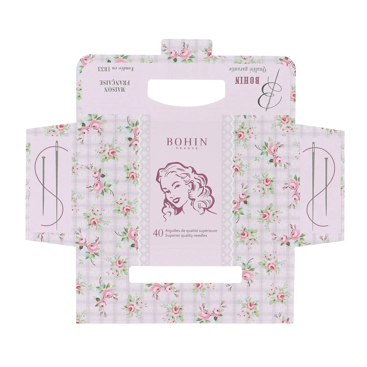 Para celebrar os 185 anos da icónica marca de retrosaria francesa Bohin, foi criada esta delicada carteira de 40 agulhas, num design inspirado no universo feminino dos anos 40.