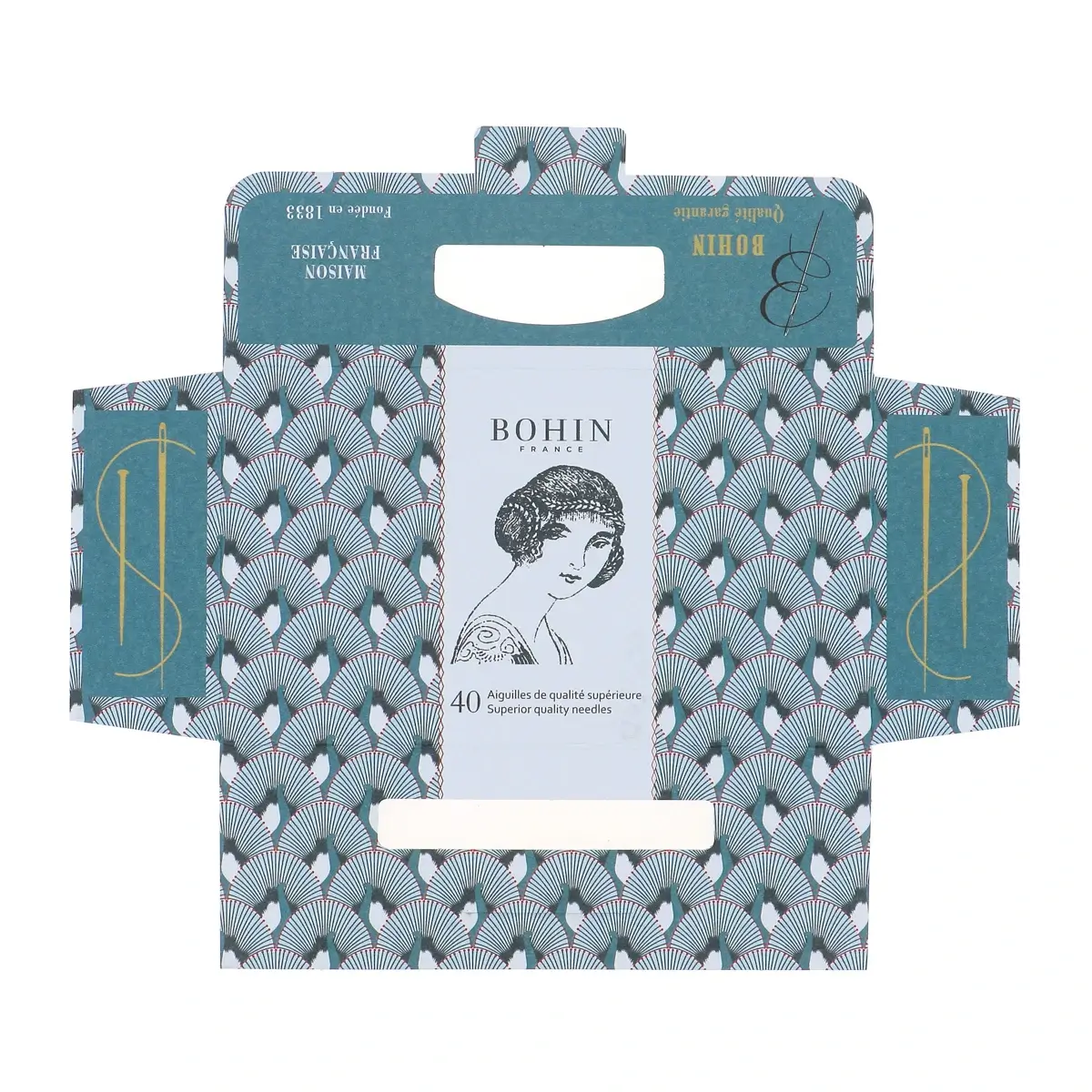 Para celebrar os 185 anos da icónica marca de retrosaria francesa Bohin, foi criada esta delicada carteira de 40 agulhas, num design inspirado no universo feminino dos anos 20.