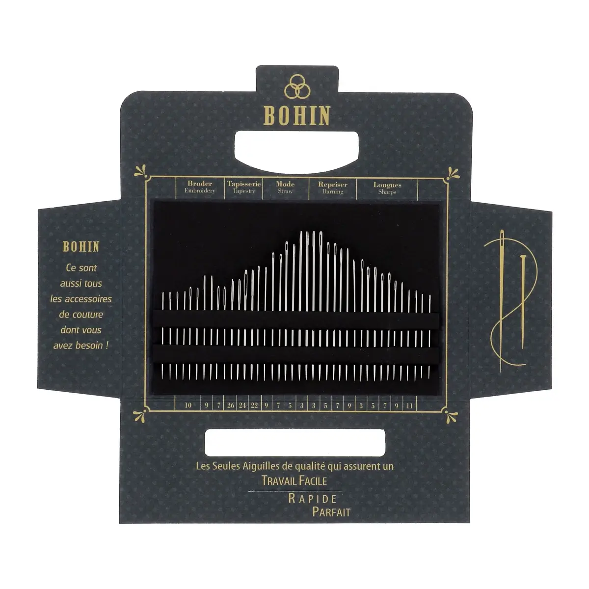 Fabricadas em França, a carteira “Solange” é composta por 40 agulhas de aço niquelado de elevada qualidade.