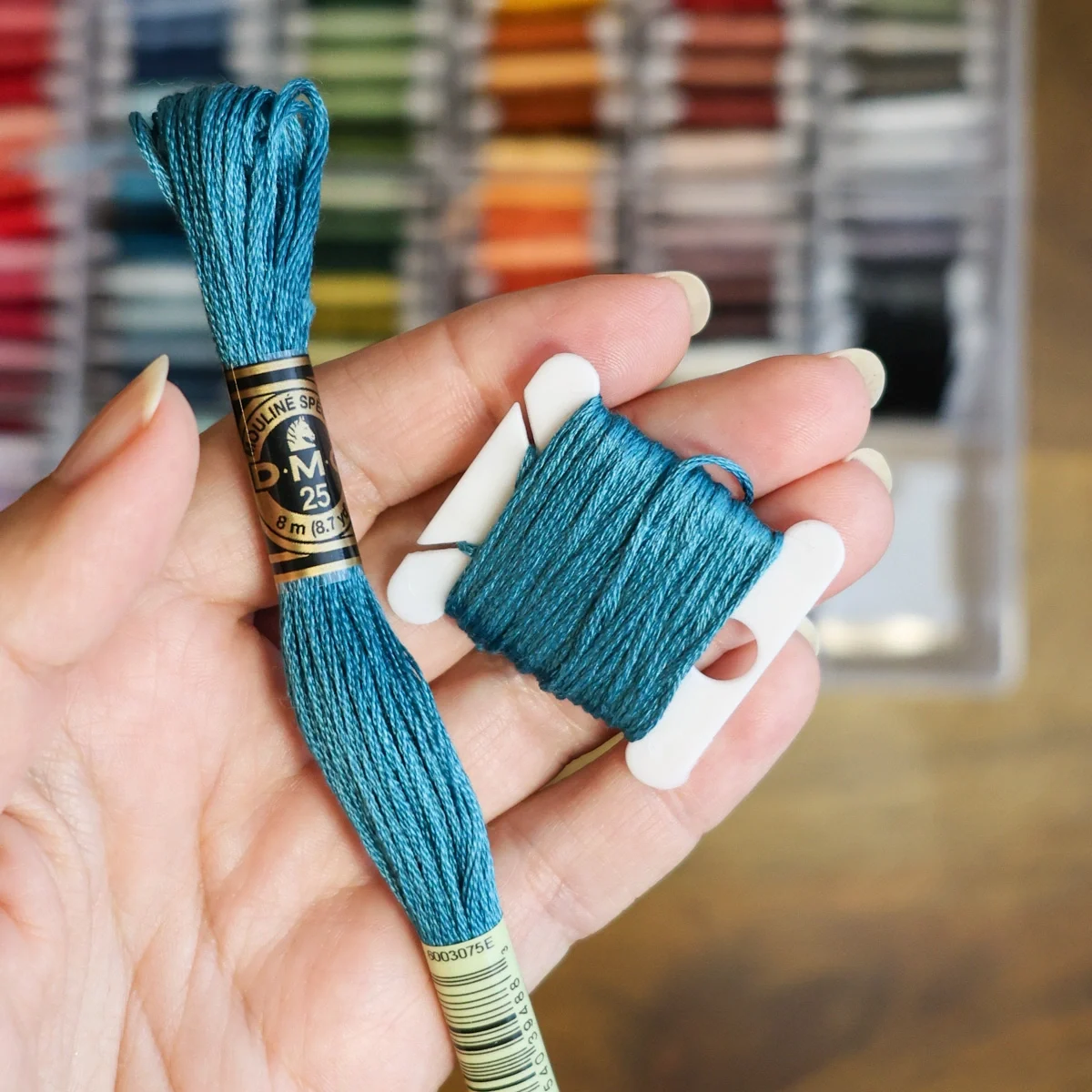 A organização dos nossos materiais é essencial para nos mantermos focadas nos nossos projetos. Para além das bobines de plástico manterem os teus fios arrumadinhos, o anel permite mantê-los todos unidos. Assim, enquanto estiveres a trabalhar num bordado, nunca perdes de vista as meadas. Especialmente prático para quem gosta de levar o seu projeto consigo para a esplanada ou para a praia. ‘Bora lá então desfrutar das férias e bordar!