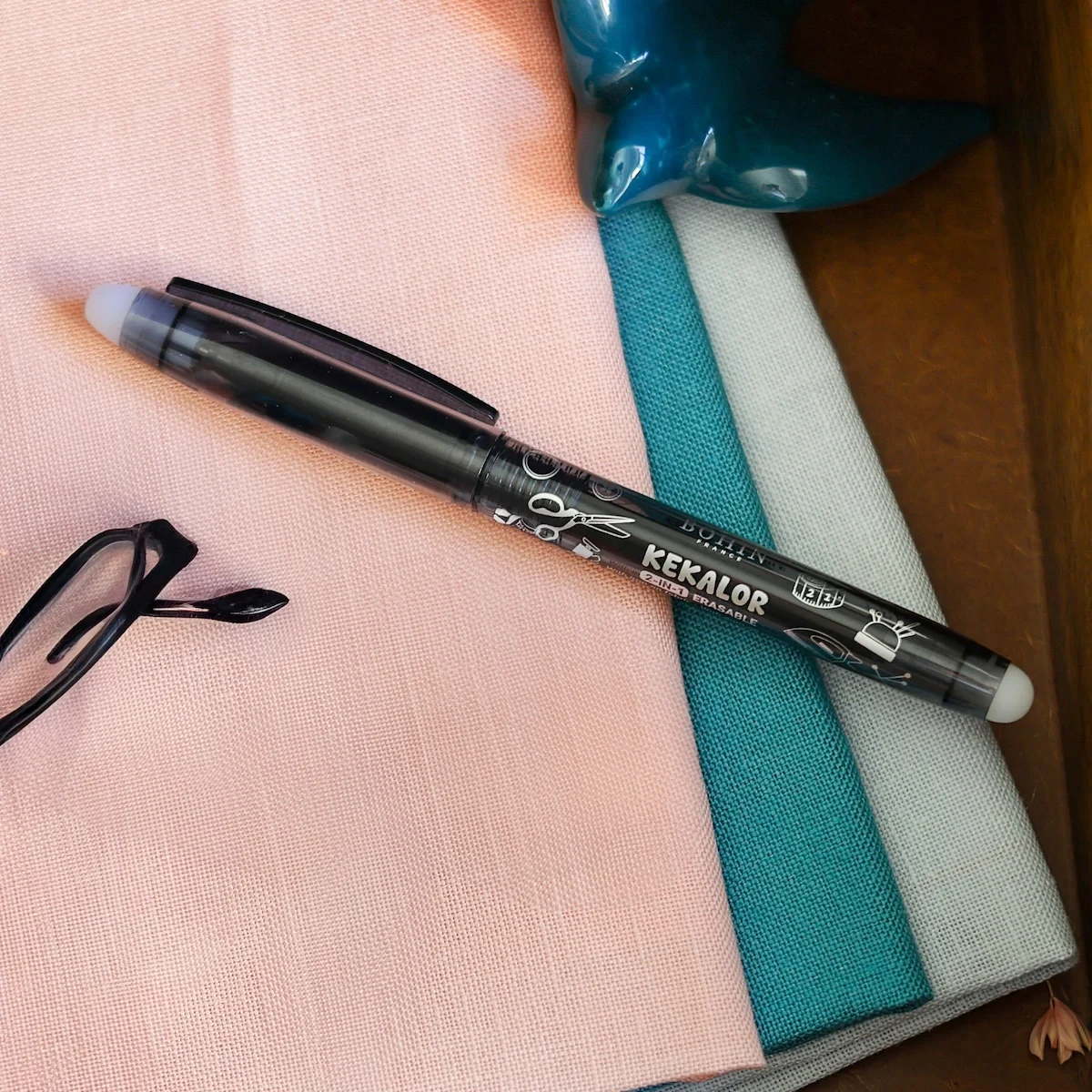 Canetas térmicas para tecido: os traços desaparecem com calor. Disponível em várias cores.