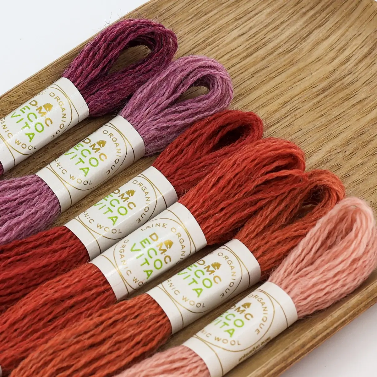 Se queres marcar a diferença, os Eco Colour Packs são para ti: conjuntos únicos de 6 meadas do fio DMC Eco Vita, 100% lã orgânica, tingidas exclusivamente com corantes naturais como noz, índigo, ruiarbo e zimbro.