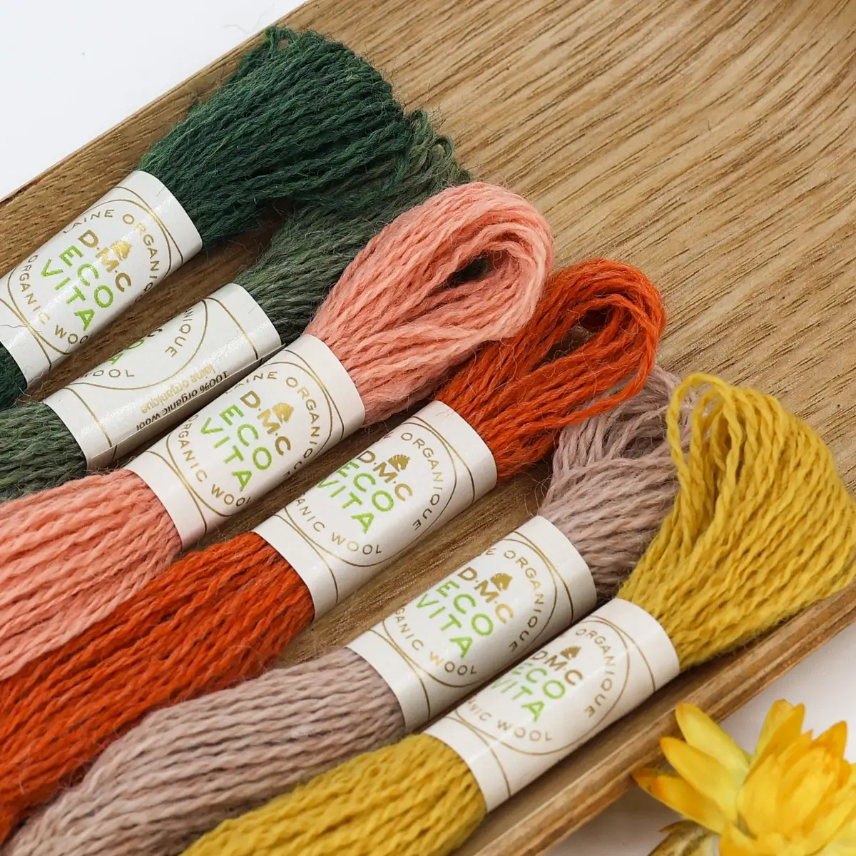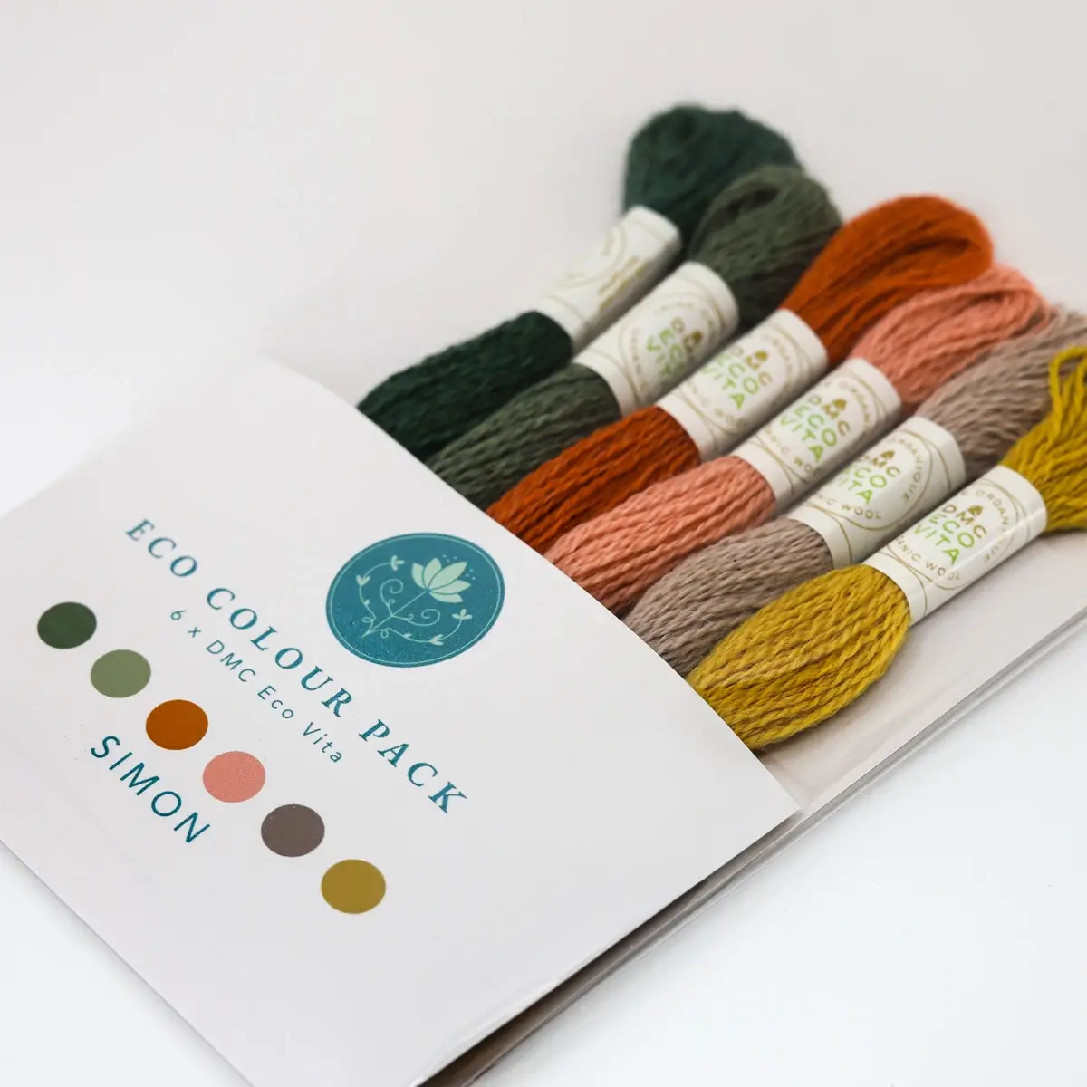 Se queres marcar a diferença, os Eco Colour Packs são para ti: conjuntos únicos de 6 meadas do fio DMC Eco Vita, 100% lã orgânica, tingidas exclusivamente com corantes naturais como noz, índigo, ruiarbo e zimbro.