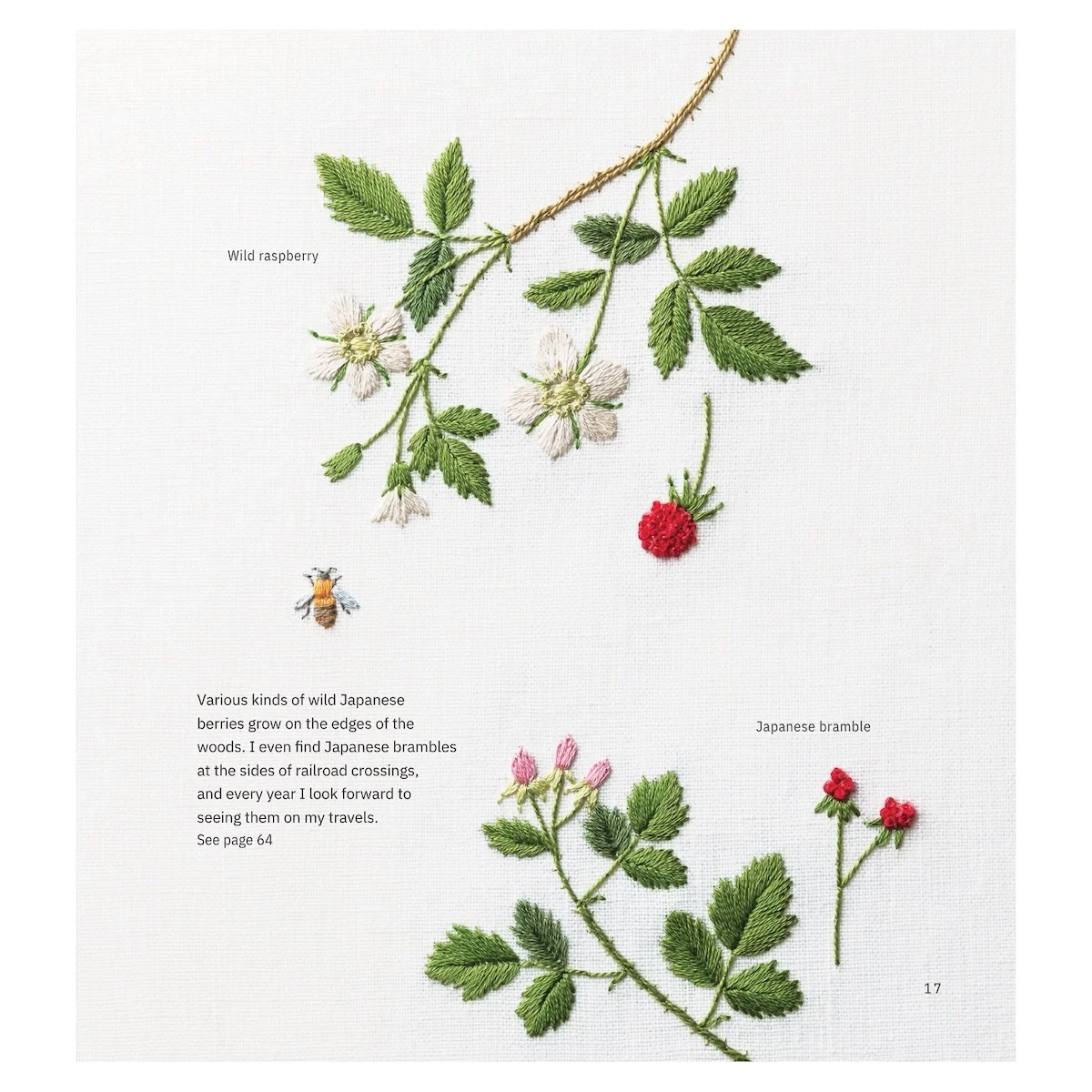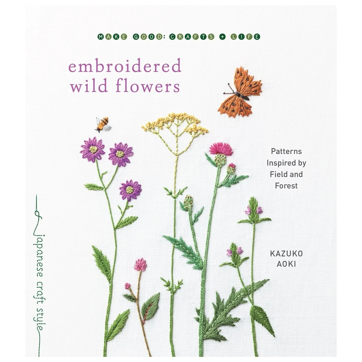 Guia com padrões simples de flora e fauna silvestres por Kazuko Aoki — ideal para iniciantes ou quem aprecia bordado naturalista. Em inglês.