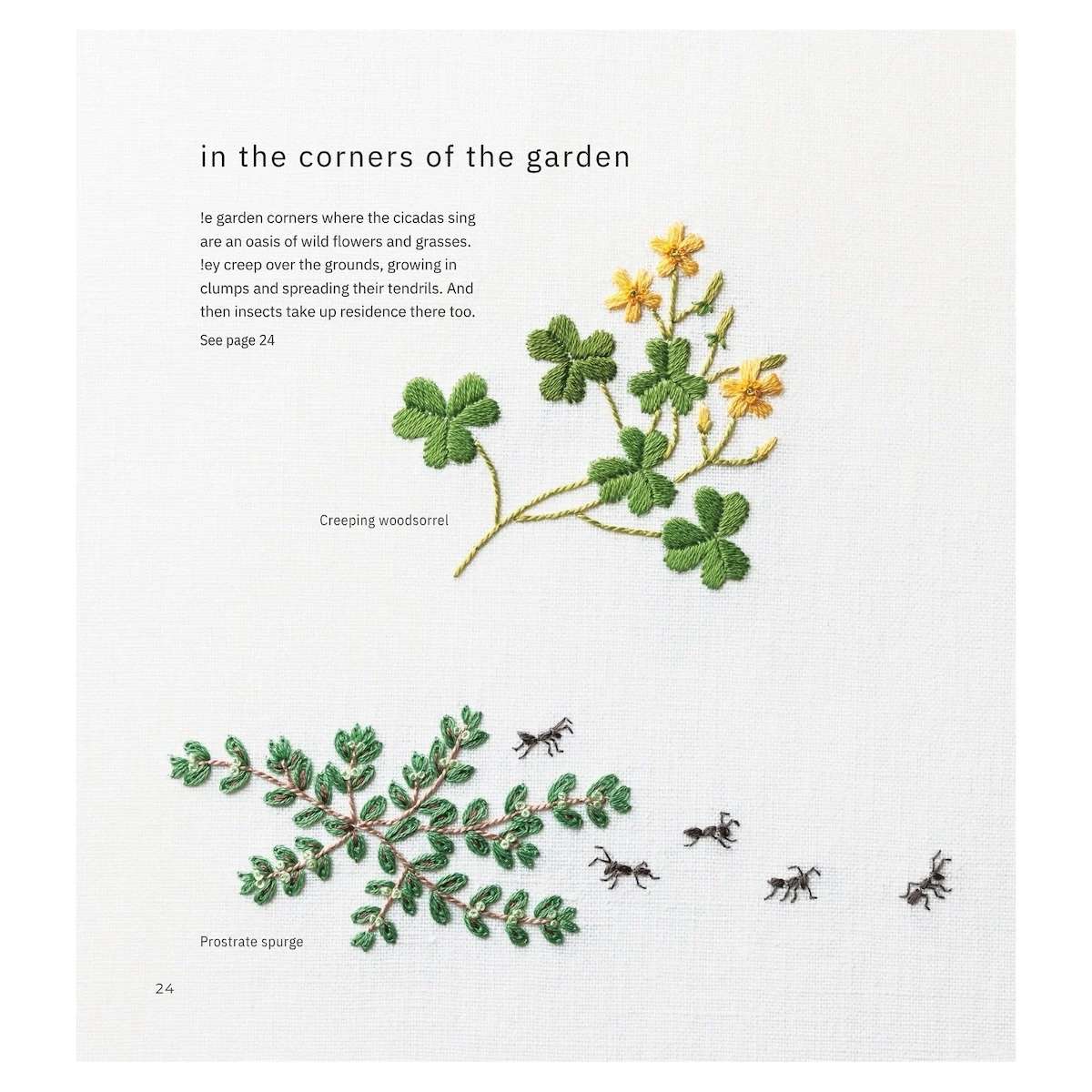 Este pequeno guia leva-nos a explorar a flora e fauna selvagens que, sem intervenção humana, brotam espontâneamente e nos encantam com as suas formas simples e cores puras. Kazuko Aoki, horticultora e bordadeira talentosa, conduz-nos ao seu mundo através de padrões também eles simples e puros. Ensina-nos a bordar flores, folhas, cogumelos e pássaros, sem muita complexidade.