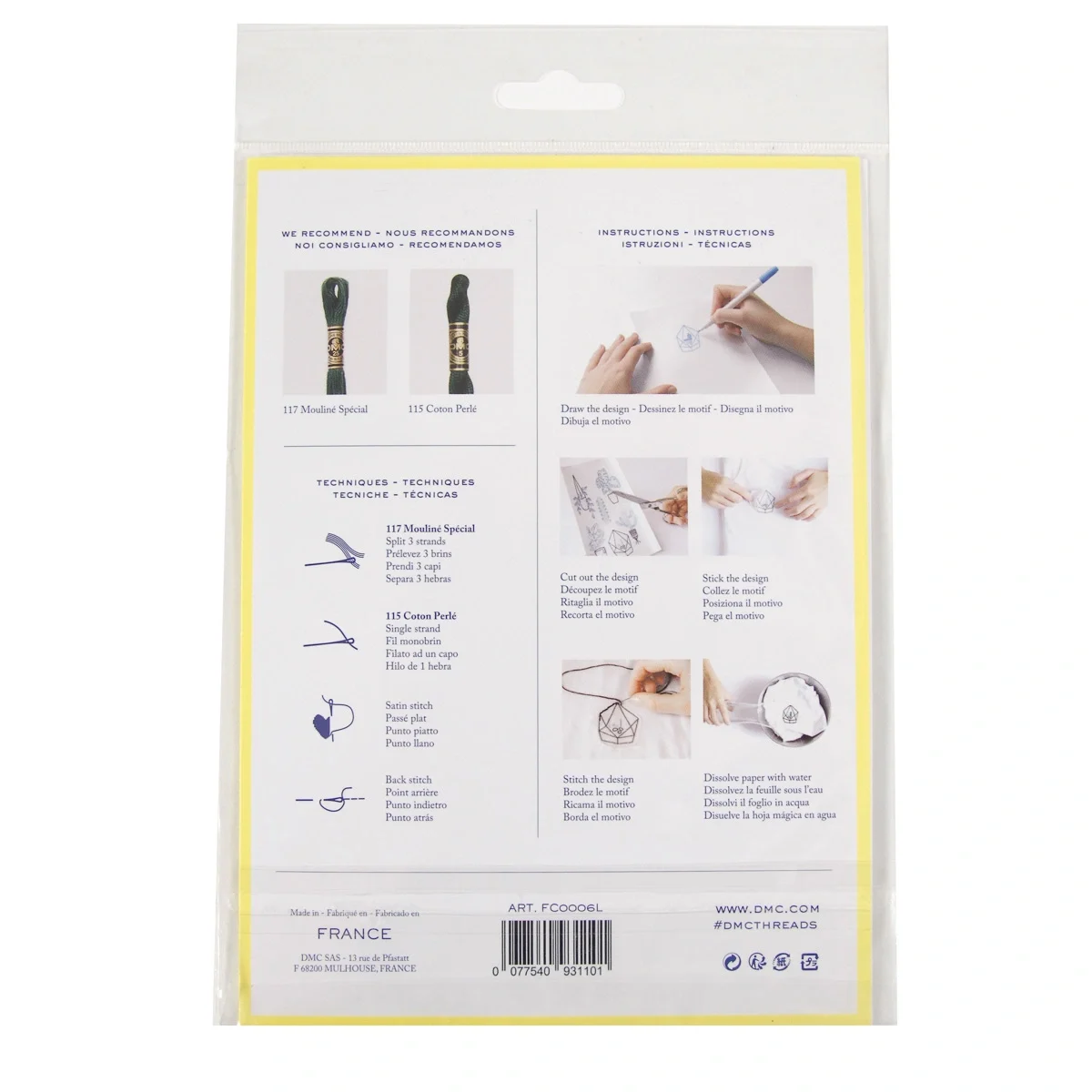 See the magic happen! Para a maioria de nós, transferir um desenho para o tecido a bordar representa uma das maiores dificuldades. Que técnica utilizar? Como fazer com que os traços e detalhes do desenho não se percam, especialmente em tecidos mais grossos e escuros, como a ganga? Magic Paper traz as respostas. Trata-se de uma película sobre a qual podes desenhar à mão ou imprimir o desenho usando a tua impressora em casa. A seguir recortas, posicionas, aplicas, e quando o bordado estiver terminado, é só passar por água! A película é totalmente solúvel em água e tudo o que fica é o teu bordado. Quem diz que a magia não acontece…?