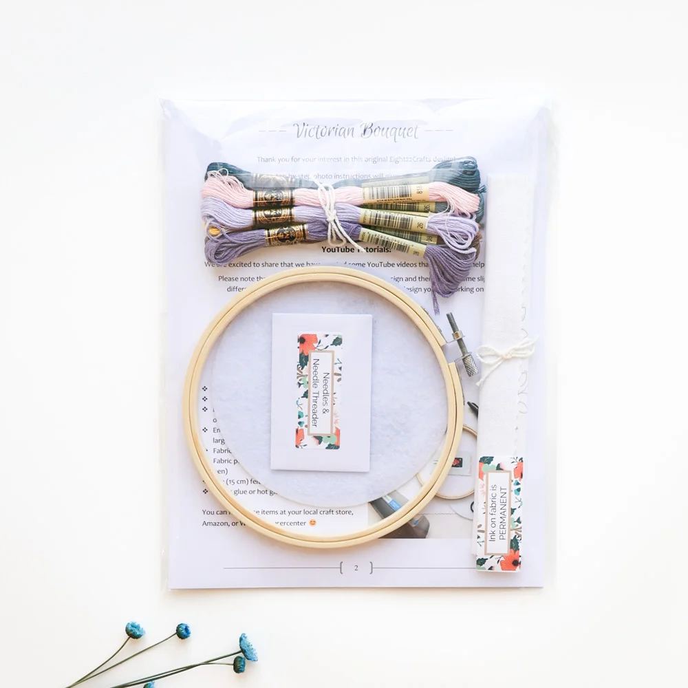 Cuidadosamente embalado à mão, este kit de bordado para iniciantes e experientes inclui tudo o que precisas para começar e terminar o teu projeto com um acabamento bonito e profissional: