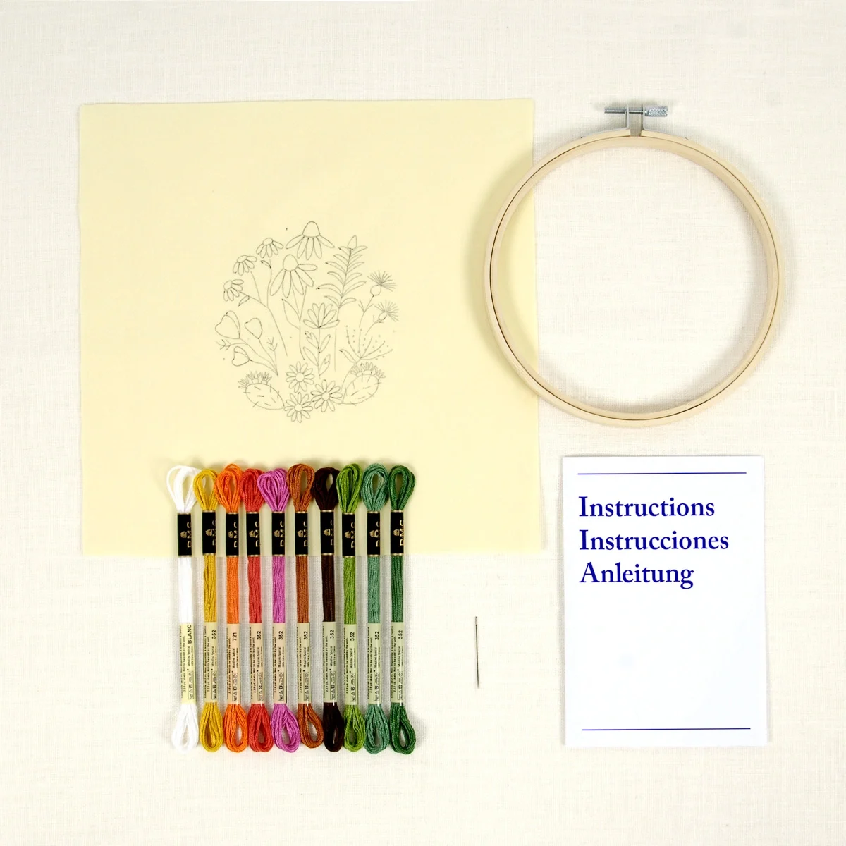É a vez da artista de bordado Celeste Johnston nos encantar com este kit inspirado em flores do campo, onde a natureza na sua forma mais espontânea sabe surpreender-nos com as suas cores e combinações. Este kit DYI consiste em: