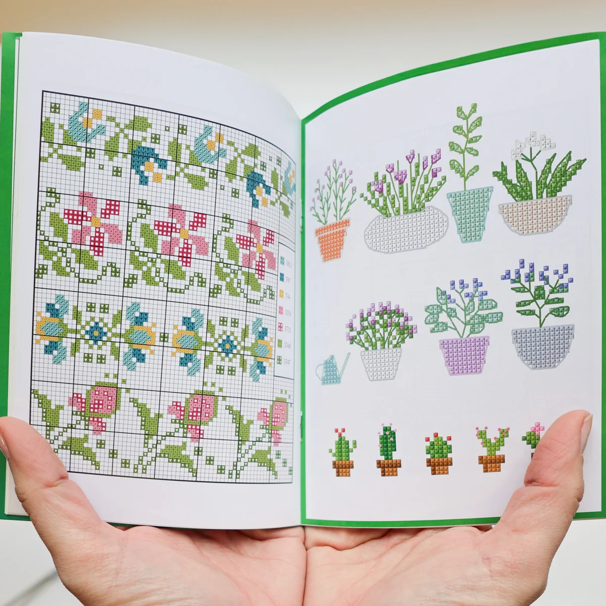 Livro repleto de ideias e esquemas para ponto-cruz, 40 páginas, tamanho A6.