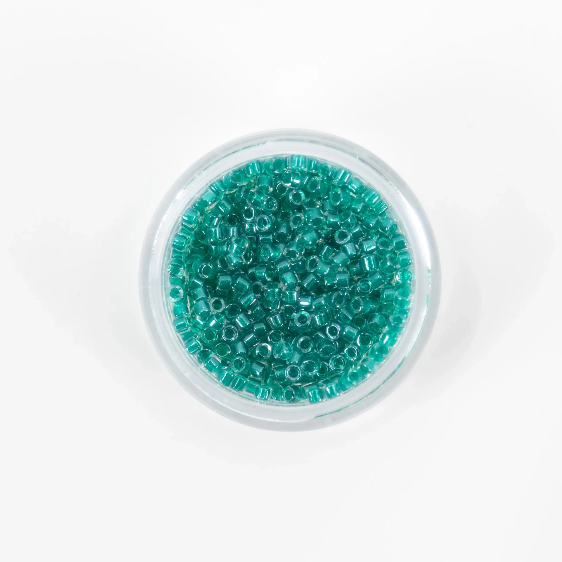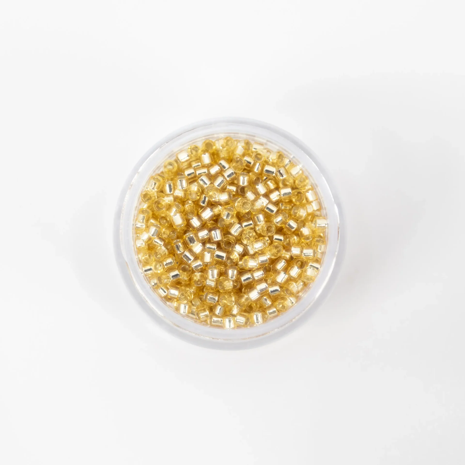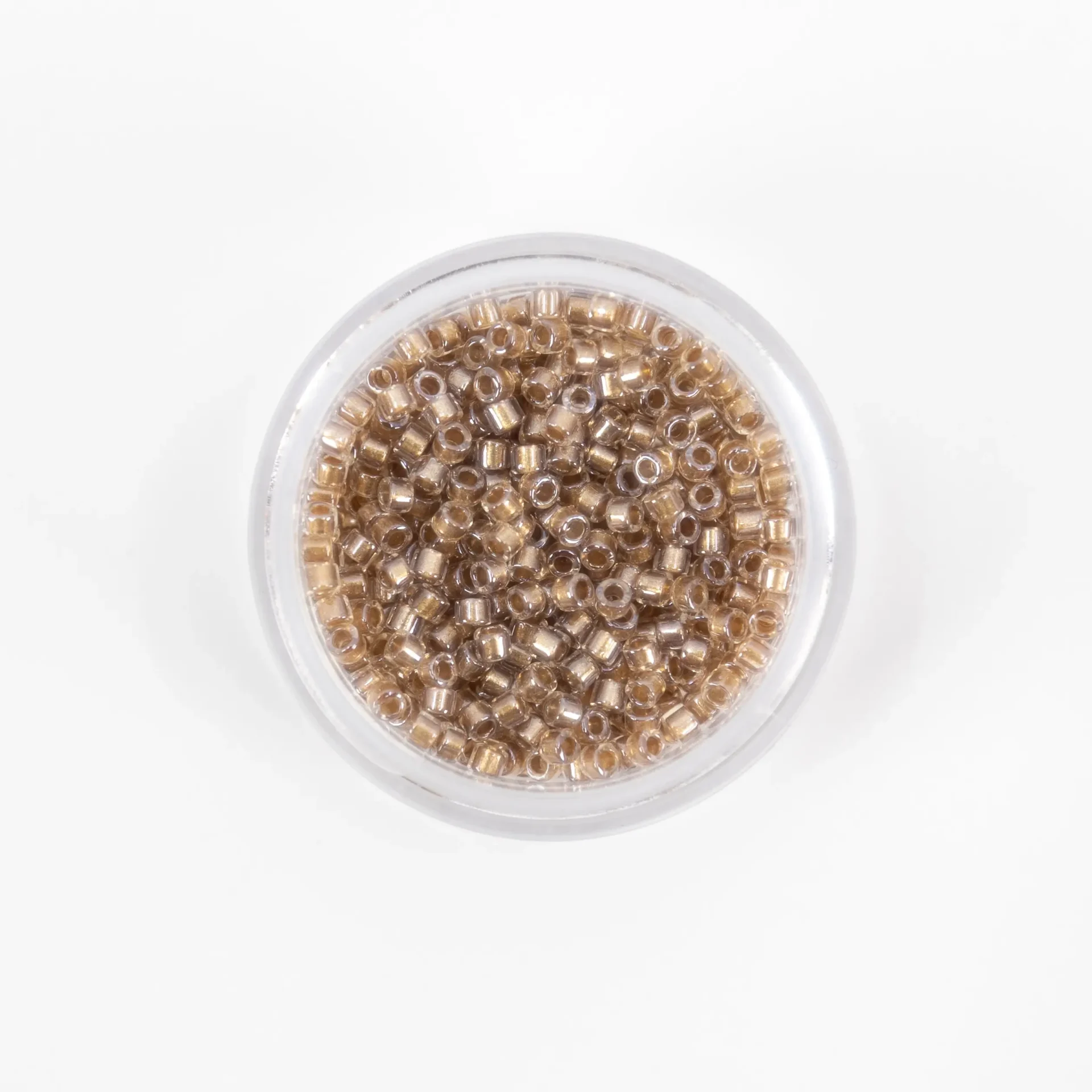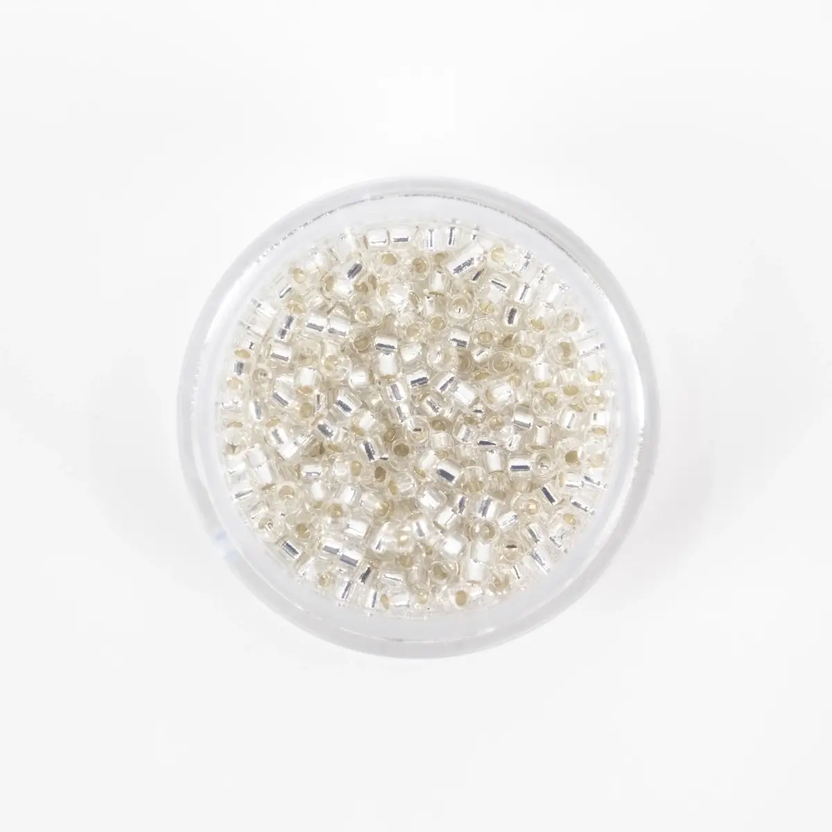Missangas Miyuki Delica 11/0, 4 g, acabamento Lined Crystal. Alta precisão e uniformidade para bordado e joalharia.