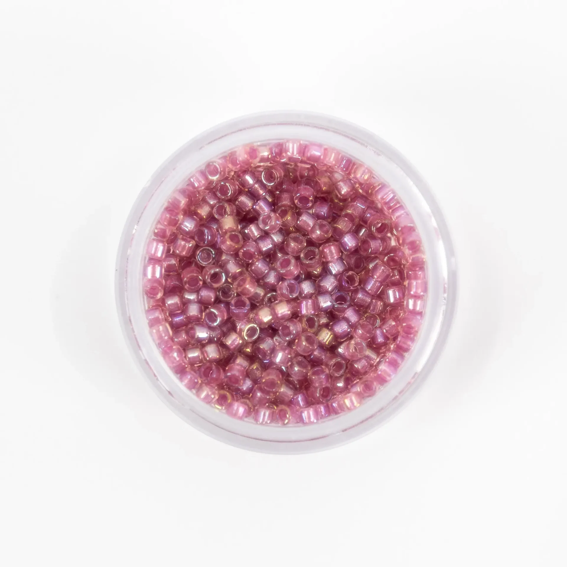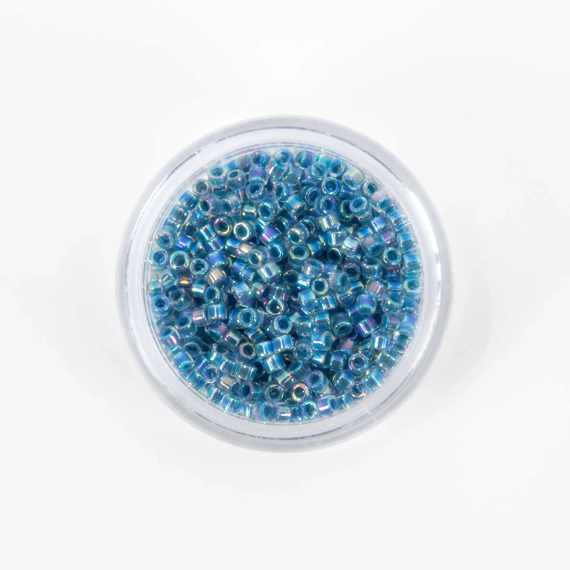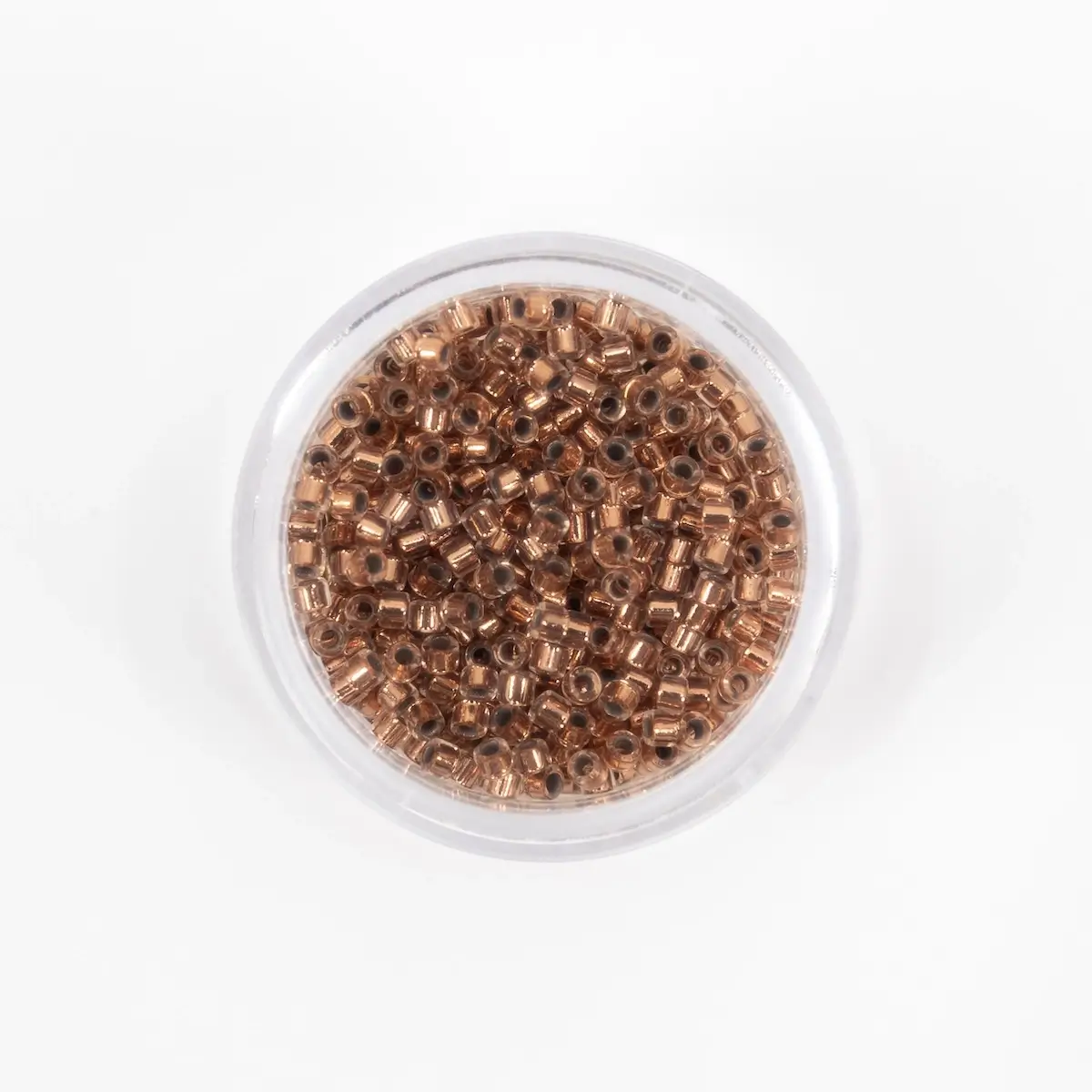 Missangas Miyuki Delica 11/0, 4 g, acabamento Lined Crystal. Alta precisão e uniformidade para bordado e joalharia.