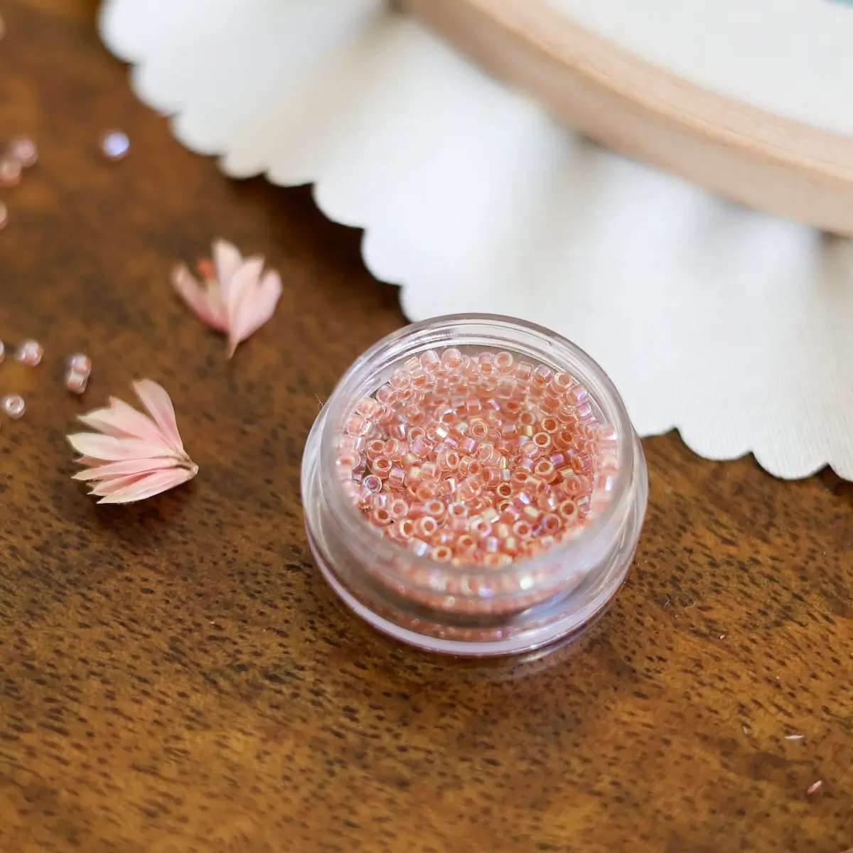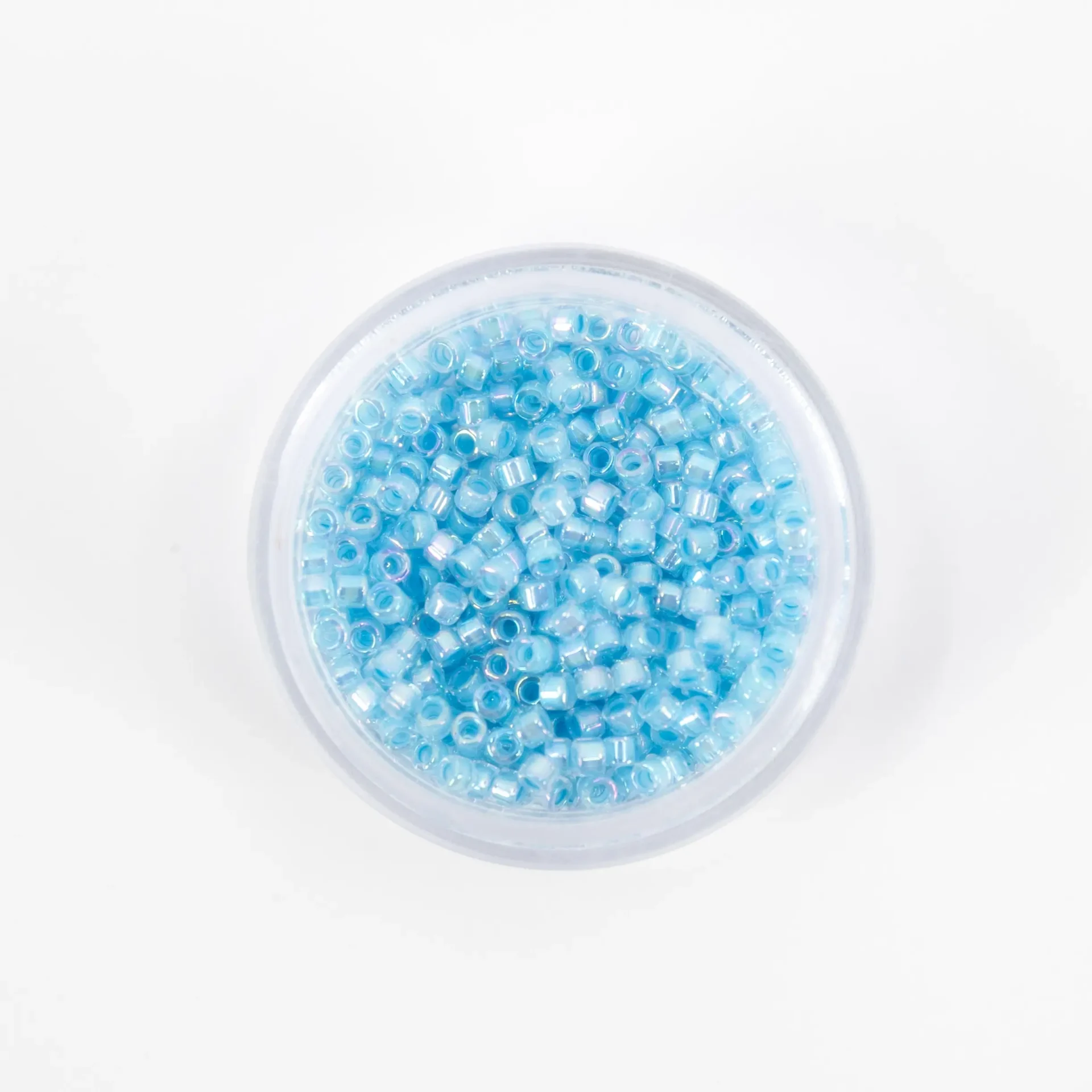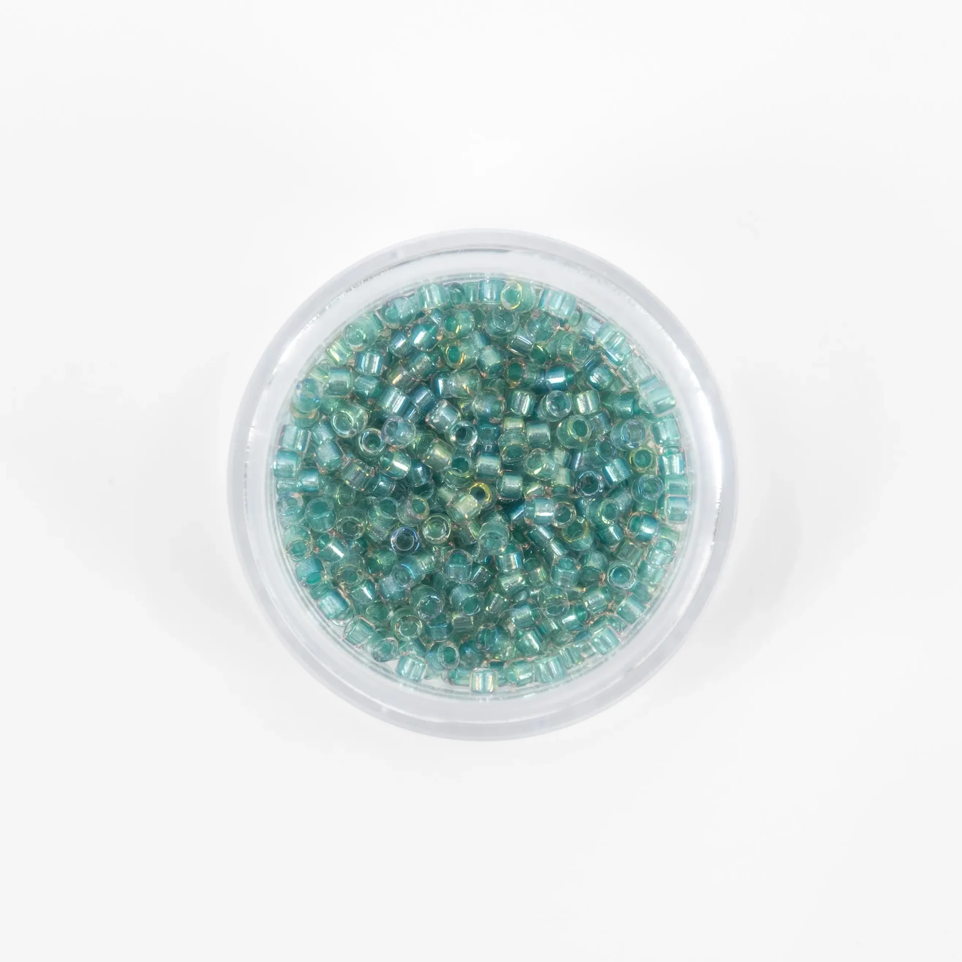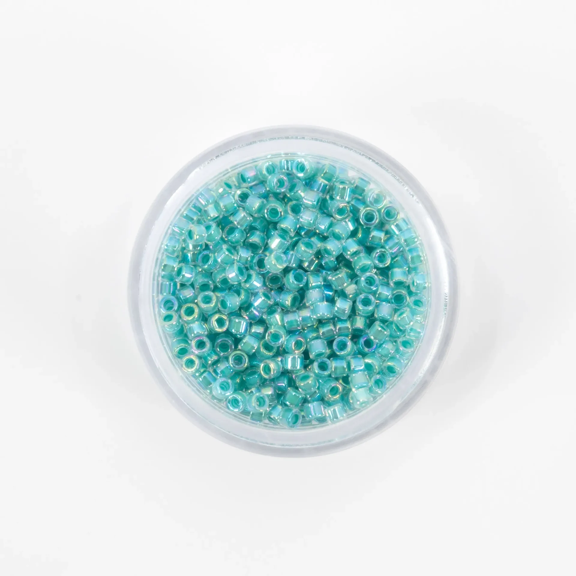 Missangas Miyuki Delica 11/0, 4 g, acabamento Lined Crystal. Alta precisão e uniformidade para bordado e joalharia.