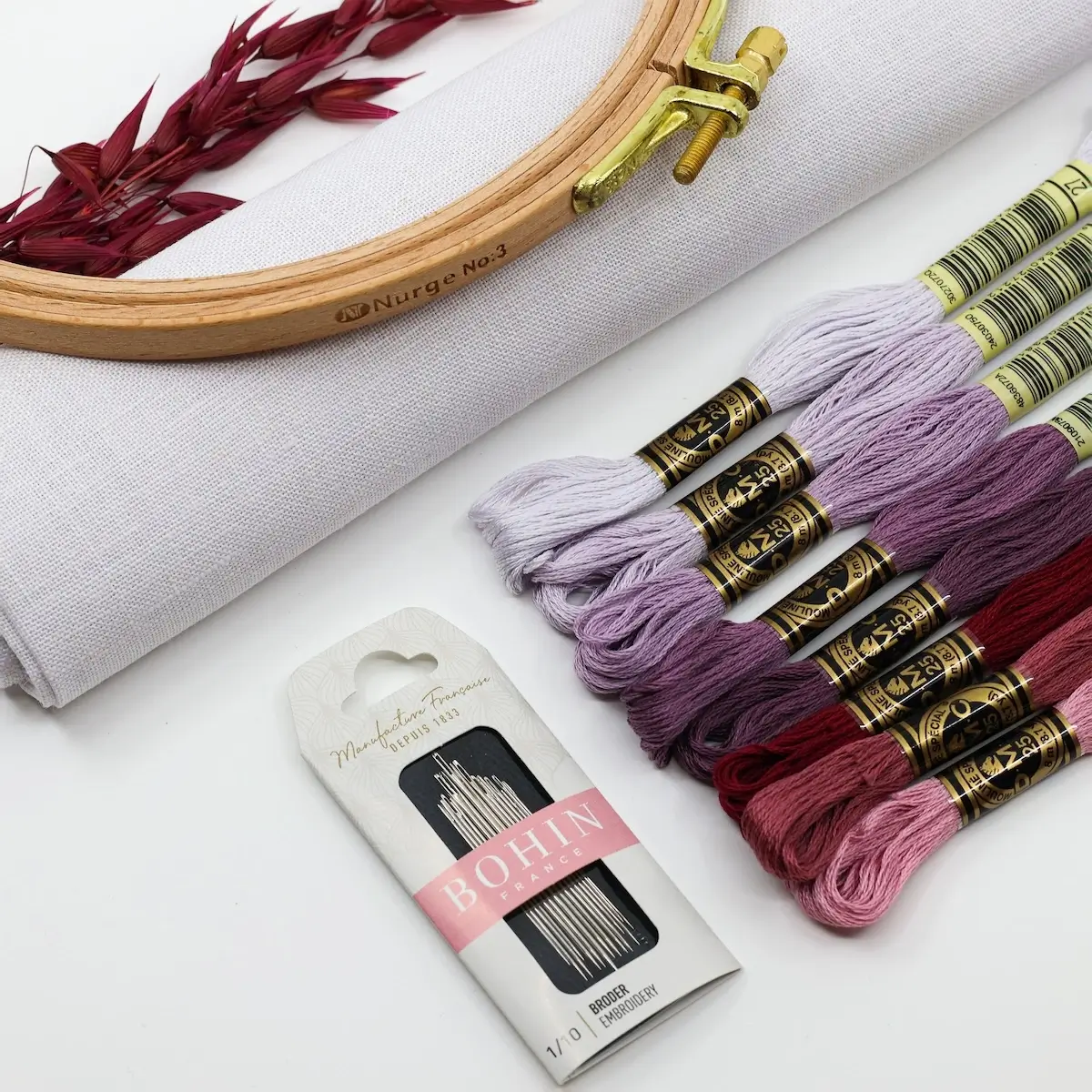 Um recorte de linho numa cor que entra em perfeita sintonia com o conjunto de 8 meadas DMC Mouliné Spécial;