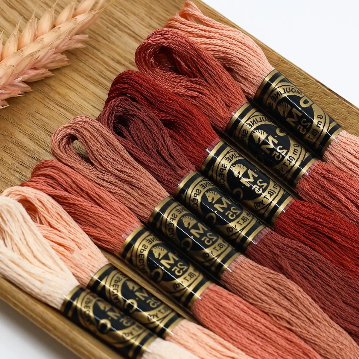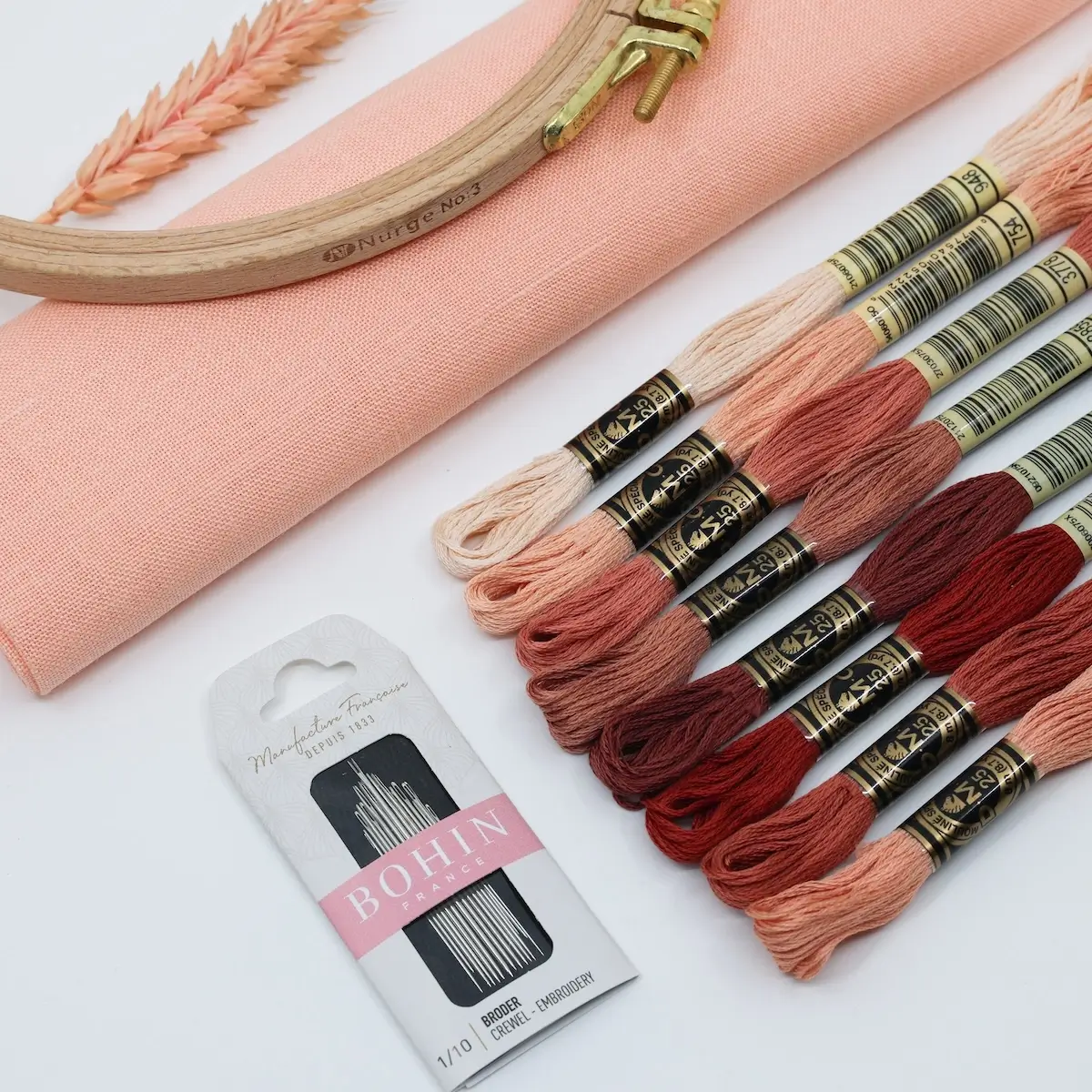 Um recorte de linho numa cor que entra em perfeita sintonia com o conjunto de 8 meadas DMC Mouliné Spécial;