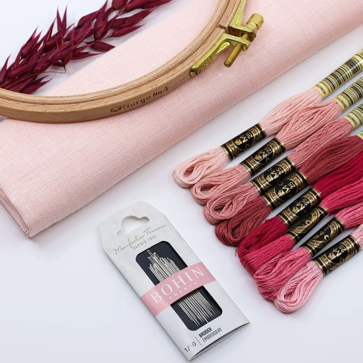 Um recorte de linho numa cor que entra em perfeita sintonia com o conjunto de 8 meadas DMC Mouliné Spécial;