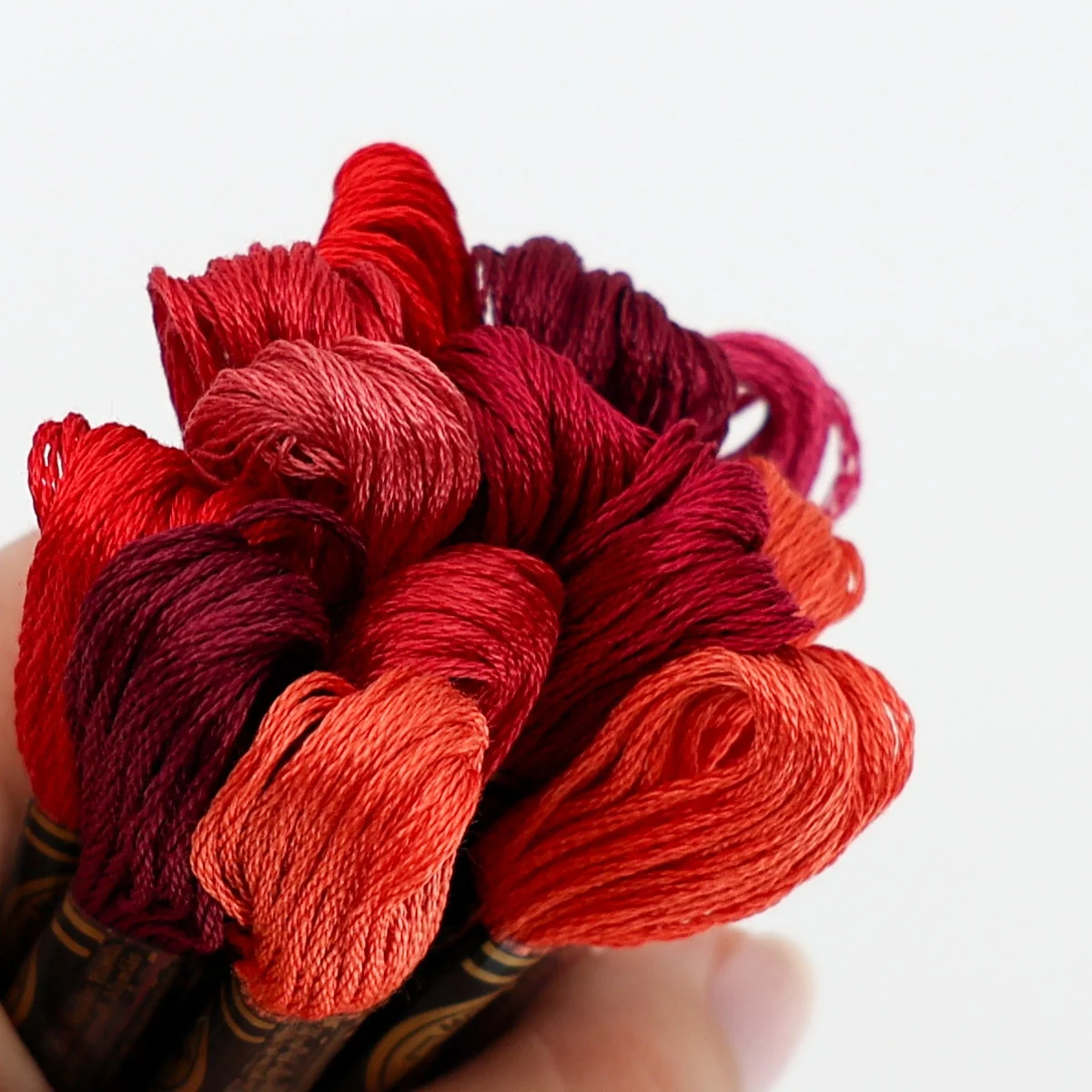 Fio de algodão egípcio DMC Mouliné Spécial para bordado à mão, em meada de 8 m, tons vermelhos