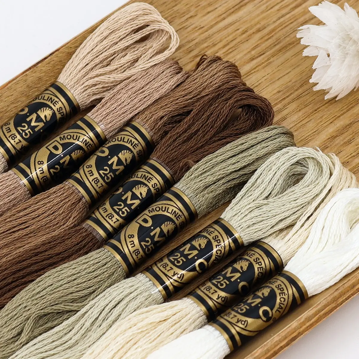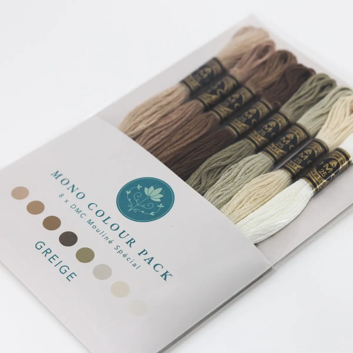 Este Mono Colour Pack foi criada para ti: uma combinação subtil e elegante de 8 meadas DMC Mouliné Spécial, todas dentro do mesmo matiz, com variações tonais que criam profundidade e harmonia no teu bordado.