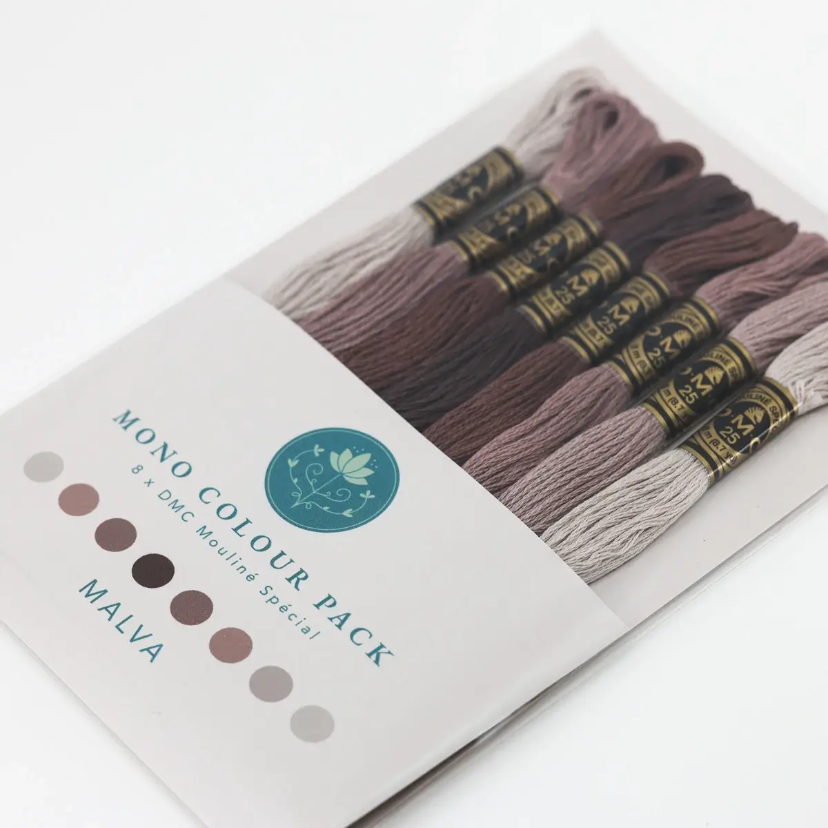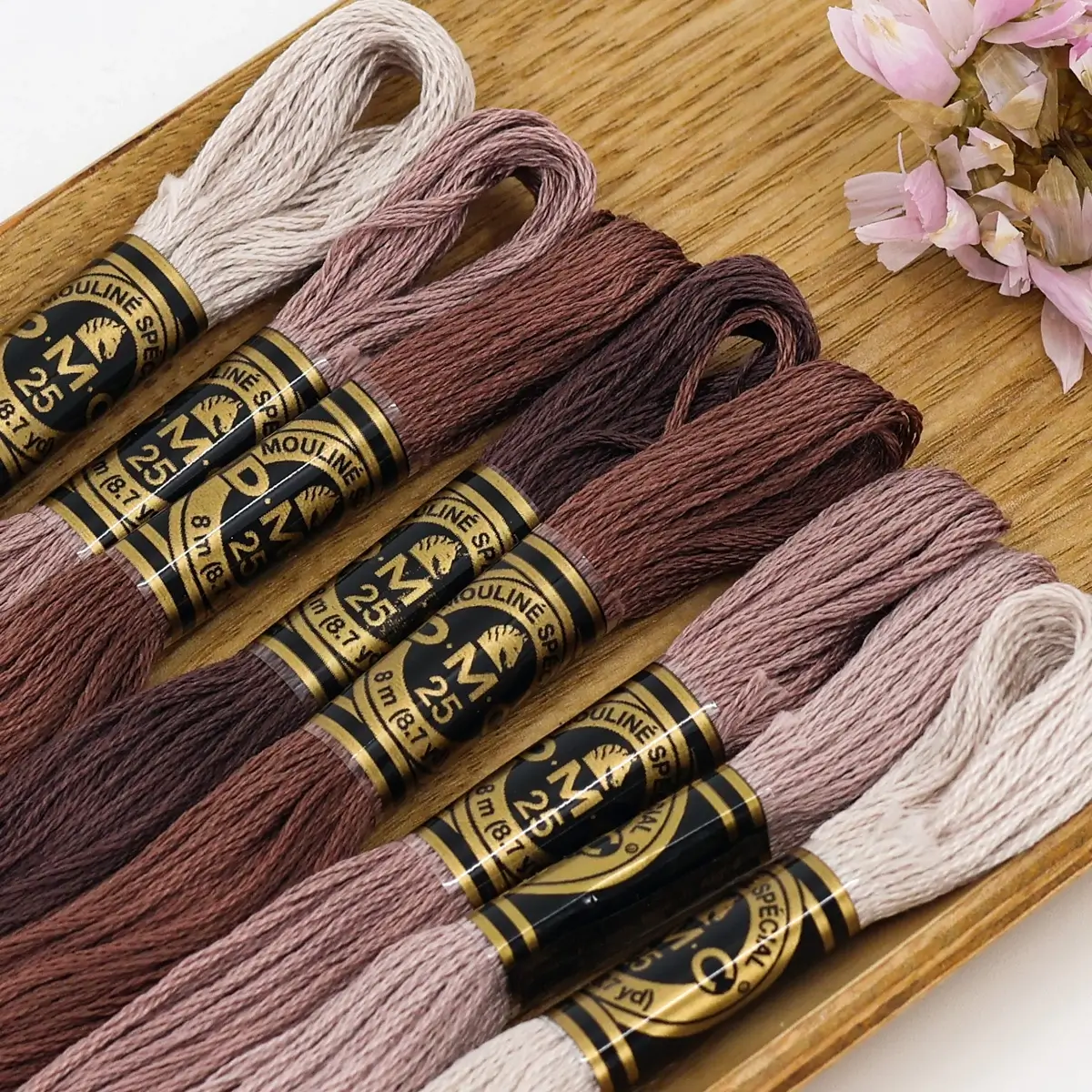 Este Mono Colour Pack foi criado para ti: uma combinação elegante de 8 meadas DMC Mouliné Spécial, todas dentro do mesmo matiz, com variações tonais que criam profundidade e harmonia no teu bordado.