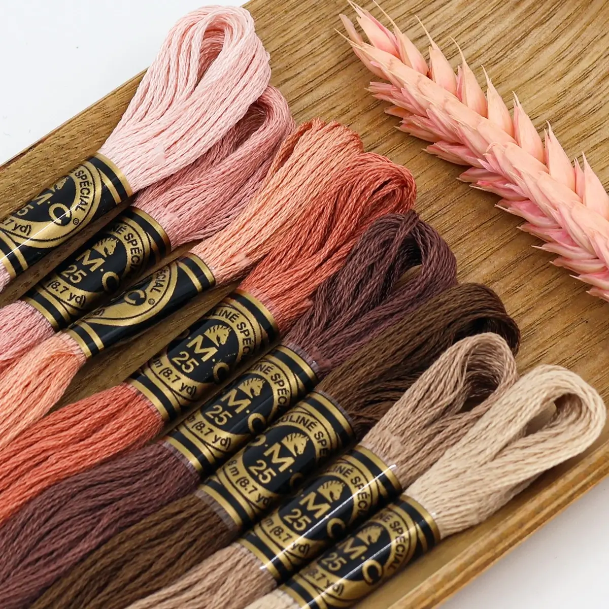 Uma paleta de rosas antigos com nuances acastanhadas – tons suaves, envelhecidos e cheios de profundidade – perfeita para bordados delicados e nostálgicos.