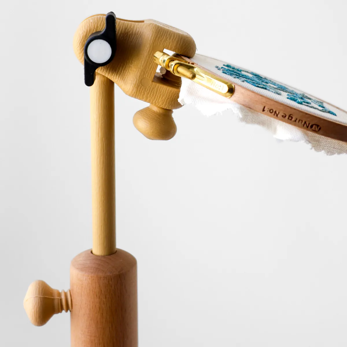 Suporte de bastidor em madeira de faia maciça, com 3 articulações. Ideal para bordares em qualquer lugar sentada.